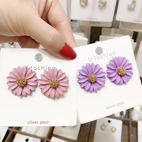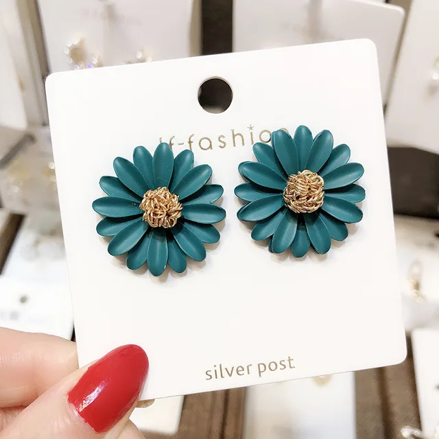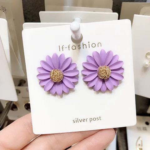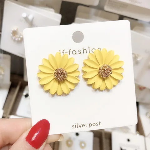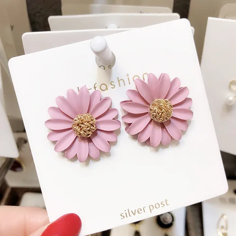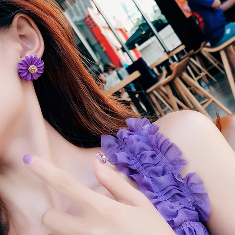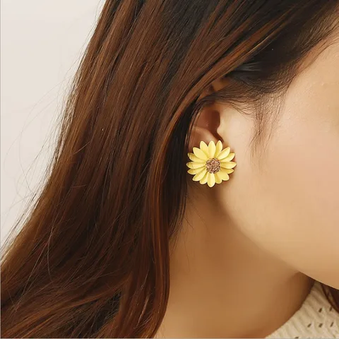 Name:Flower Daisy Stud Earrings for Women Jewelry Sweet Candy Girl Fresh Petal Gift Gold Wire Ball Fashion Korean Earrings