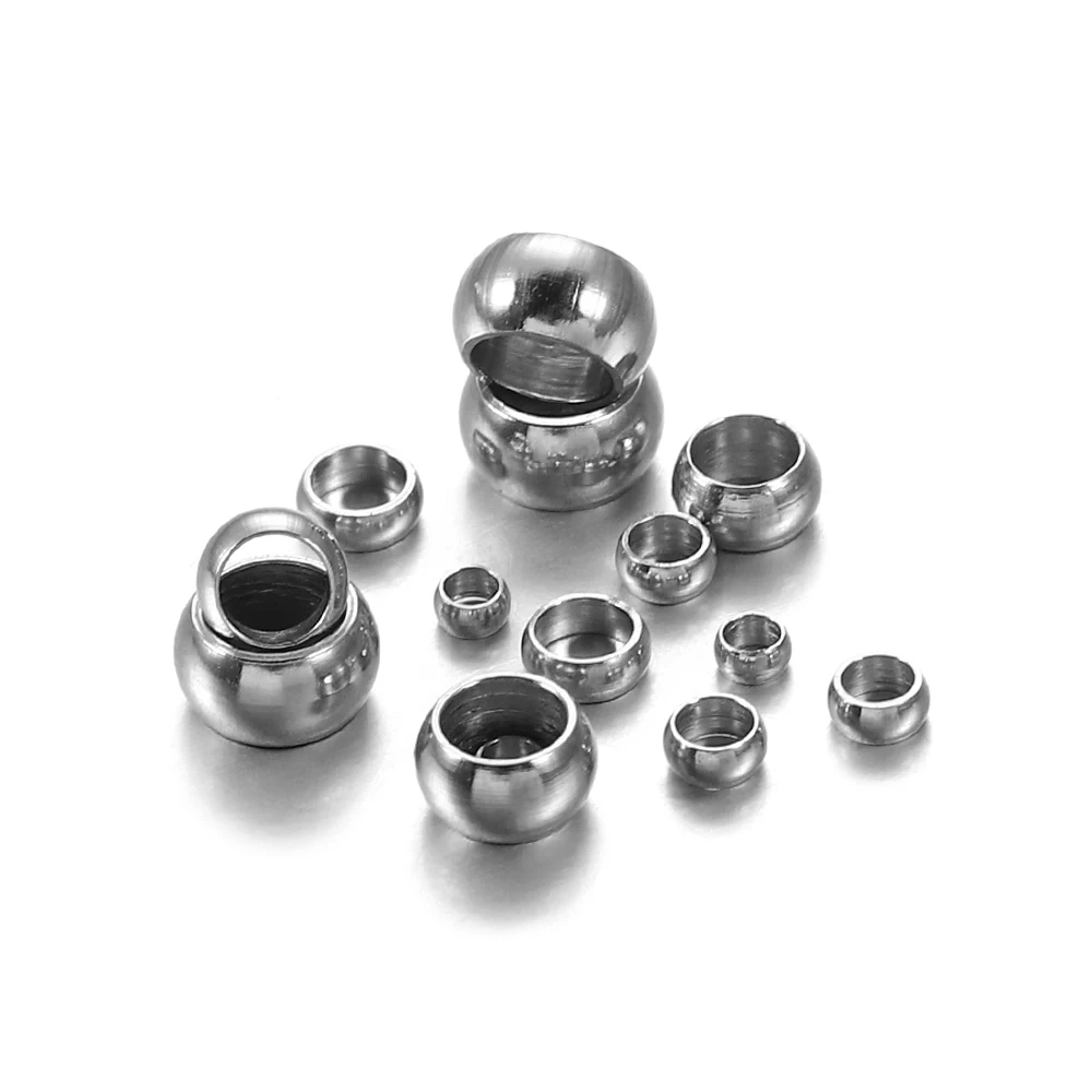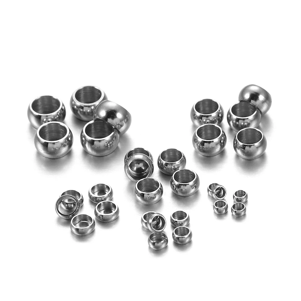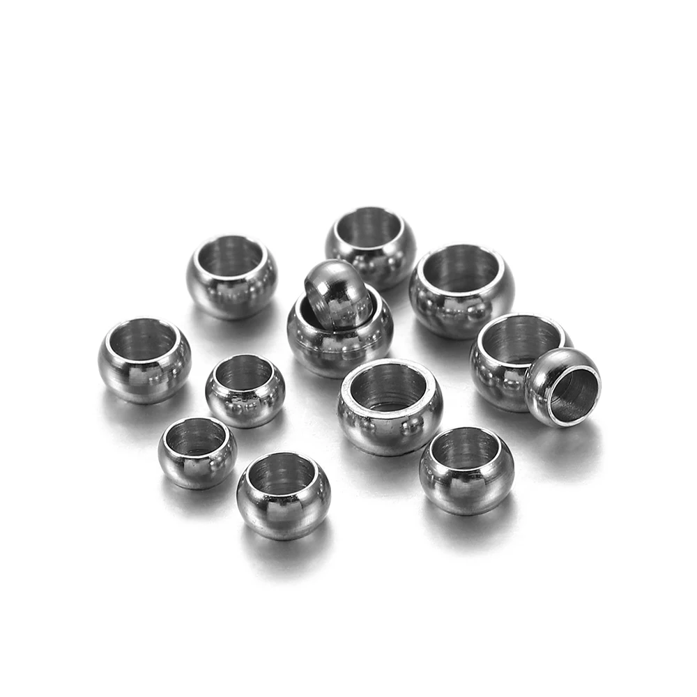 100-120Pcs/lot Stainless steel Round Big Hole Stopper Spacer Crimp Beads Wire Connectors For DIY Jewelry Making Accessories Supplies