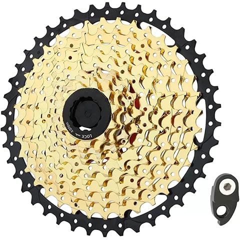 volante de 10 velocidades, engrenagens: 11-42T. Relaçã de transmissã: 11-13-15-17-21-24-28-32-36-42T. Embalagem: volante gancho traseiro. Cor: Ouro Preto.
