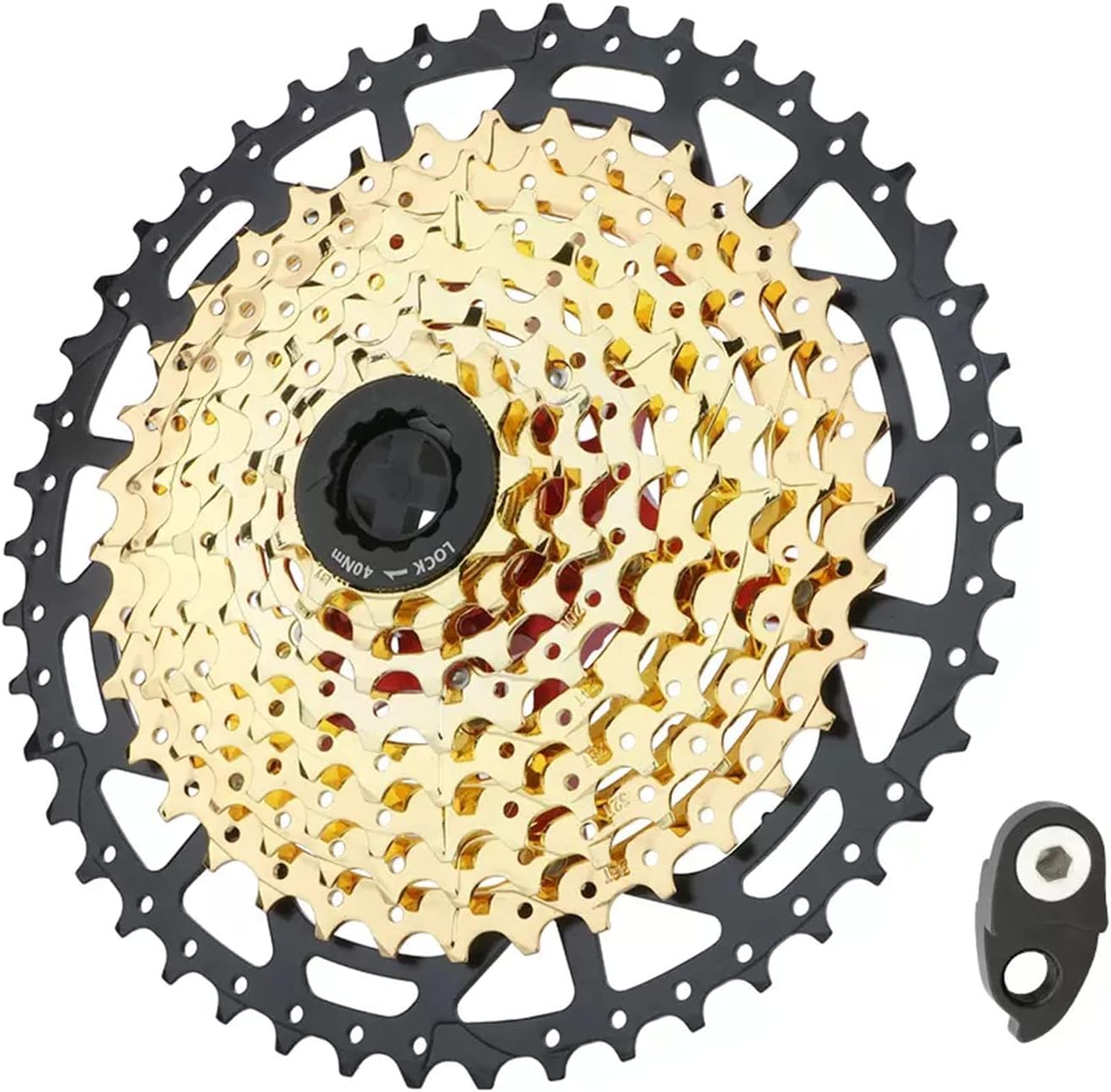 Guindaste de 9 velocidades, engrenagens: 11-42T/11-46T. Embalagem: volante com gancho. Cor: Ouro Preto.