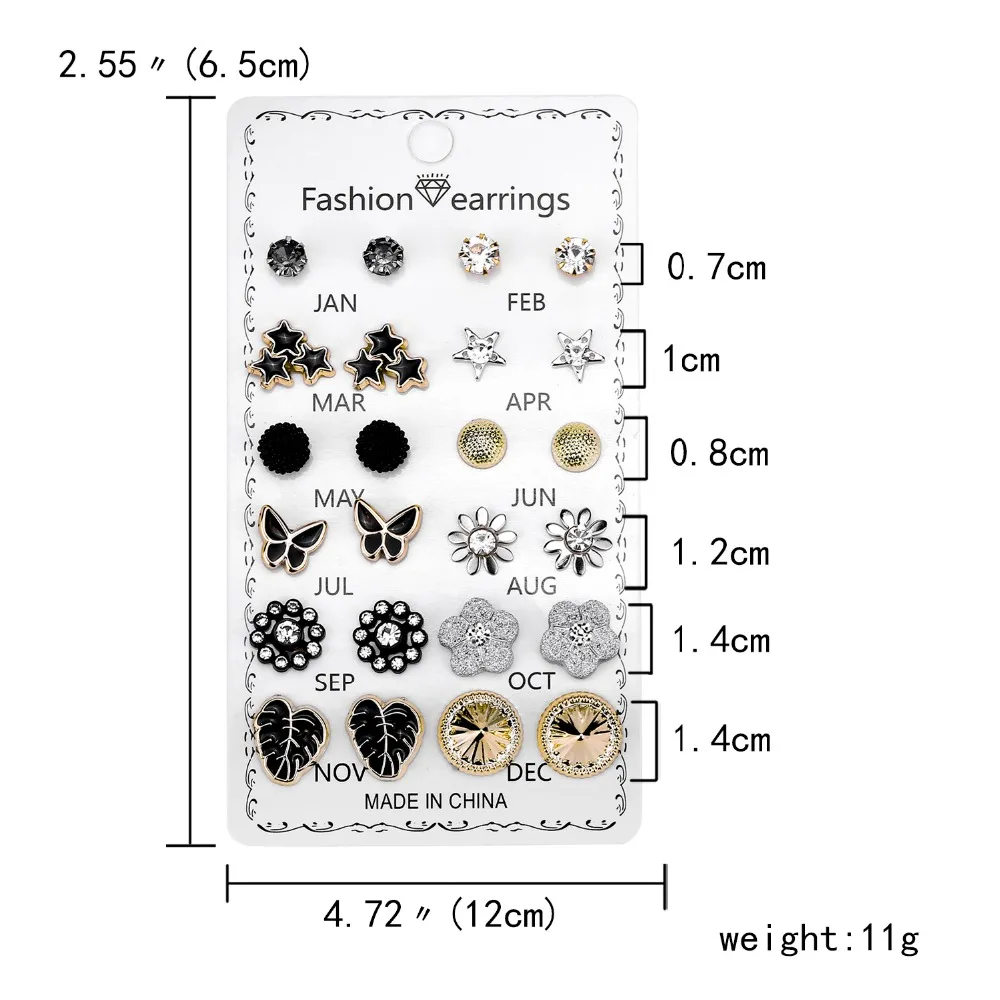 12 pairs/set Crystal Fashion Earrings Set Women Jewelry Accessories Piercing Ball Stud Earring kit Bijouteria brincos New 2021