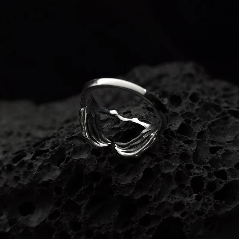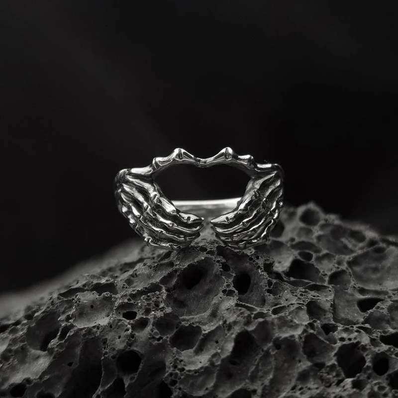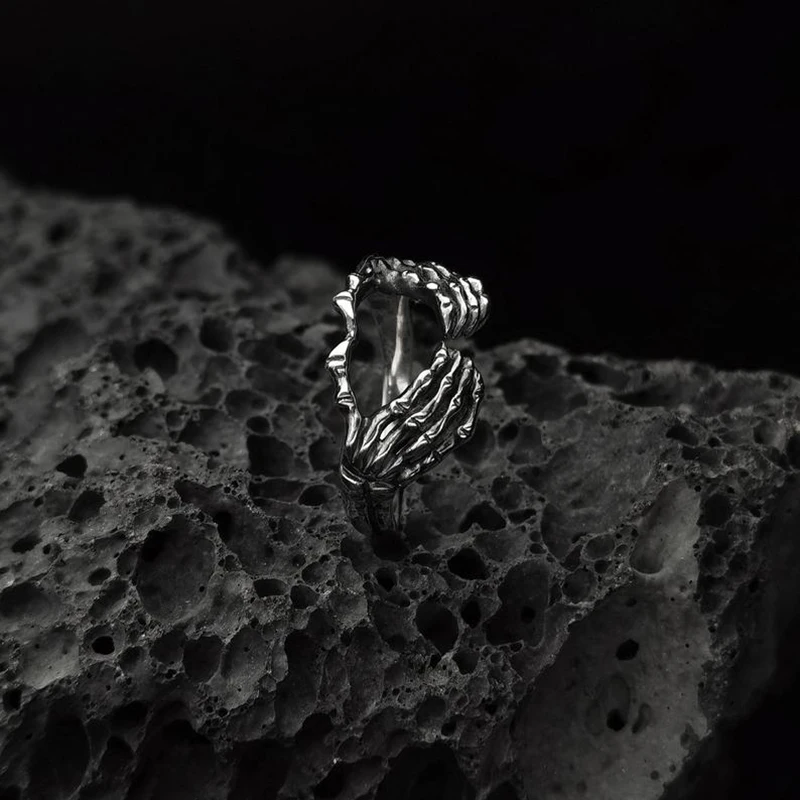• Punk Men's Skull Ring Antique Silver Color Gothic Skull Skeleton Hand Heart Ring Handmade Men's Rock Biker Jewelry