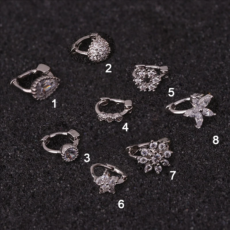 Stainless Steel Small Hoop Cz Cartilage Earring Flower Cross Cubic Zirconia Tiny Tragus Helix Rook Ear Piercing Jewelry Gift