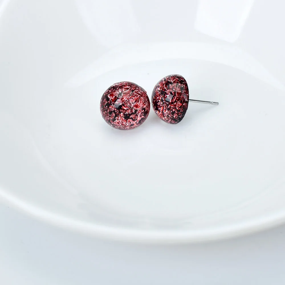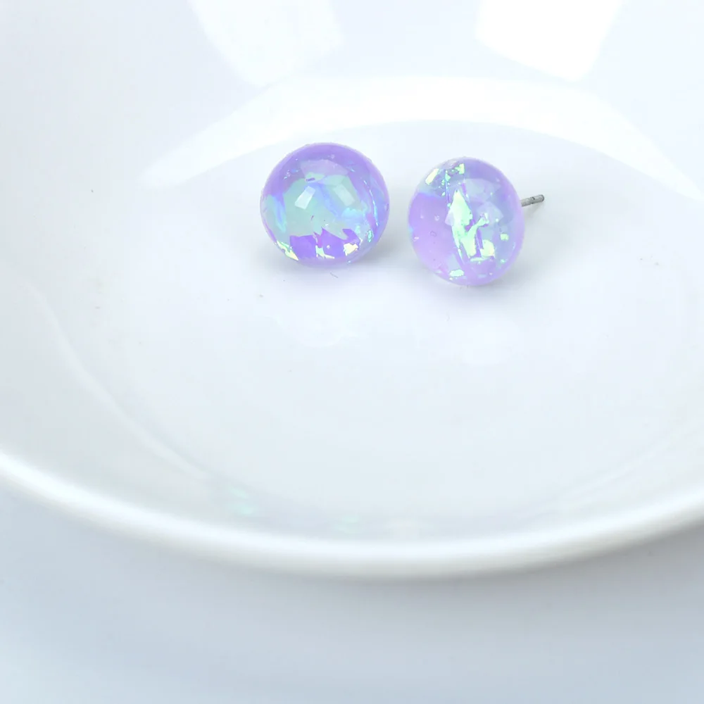 • Cute Small Candy Color Geometric Round Stud Earrings Women Resin Jewelry Blue White Earings Female Accessories