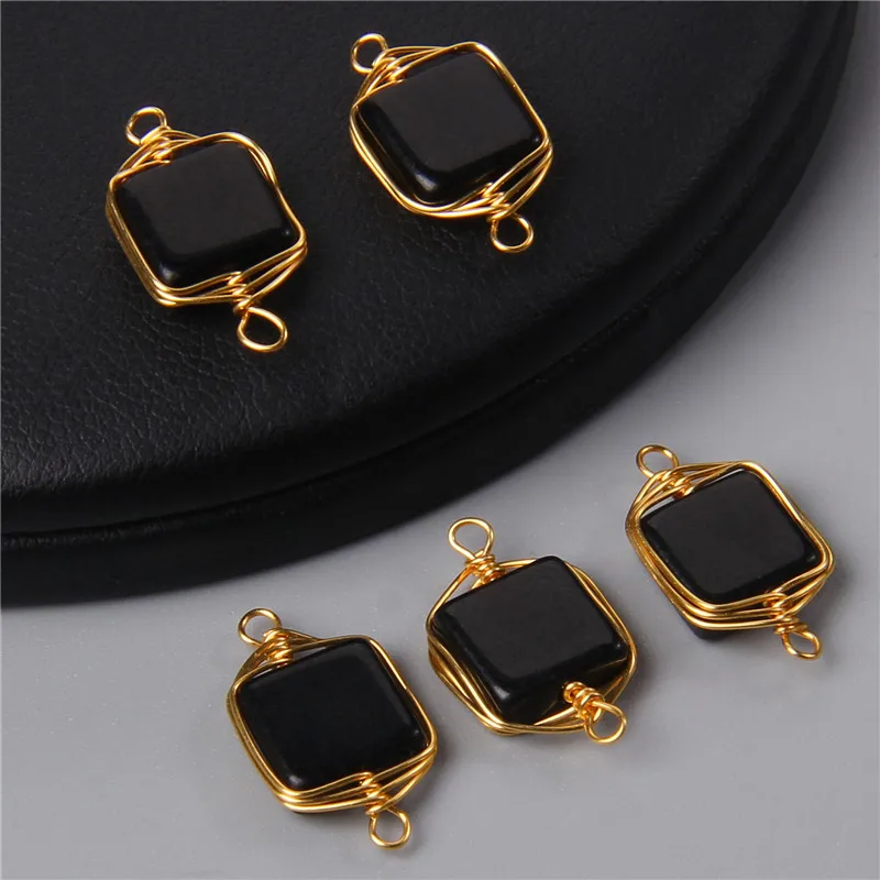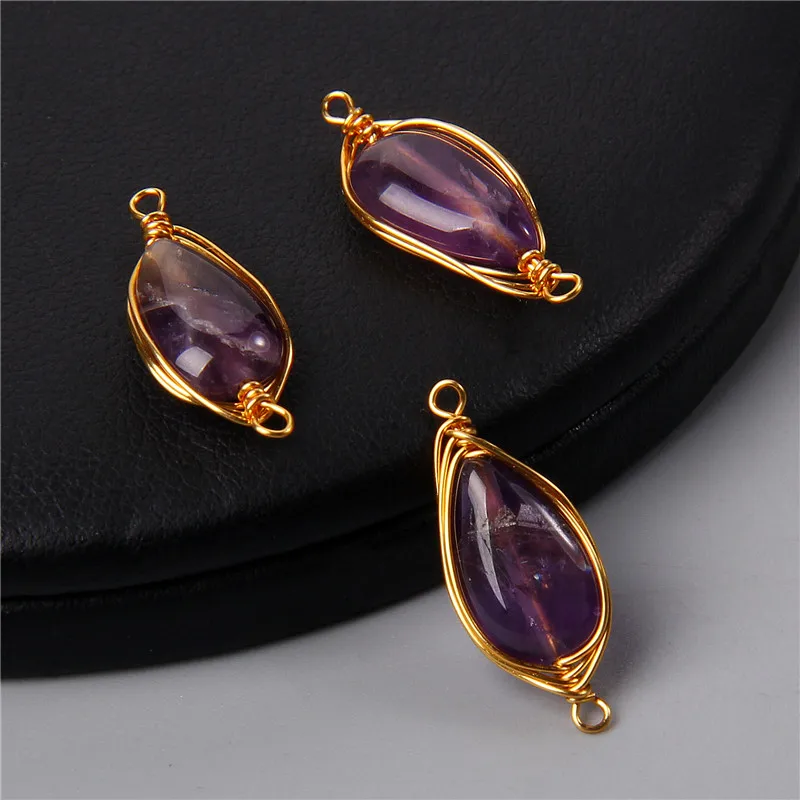 Natural Faceted Metal Wire Wound Winding Stone Connector Pendant Charm For Jewelry Making Bracelet Necklace Wholesale Gifts