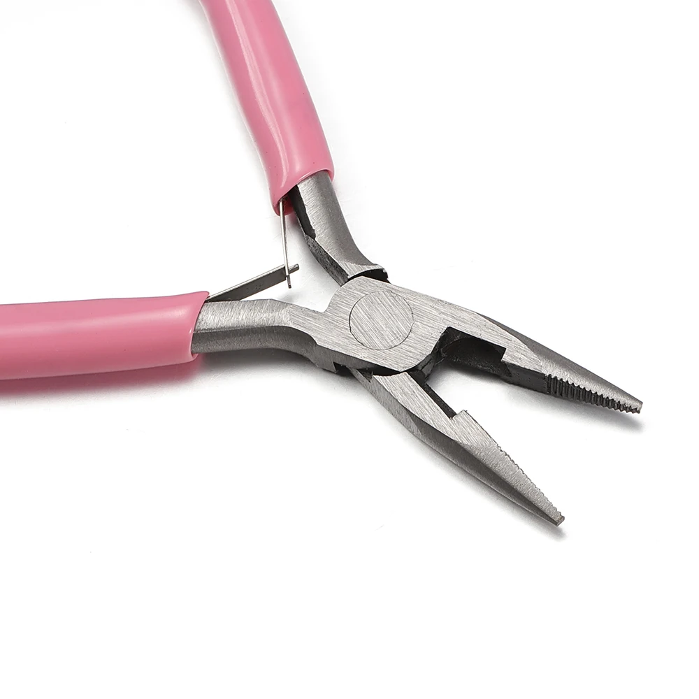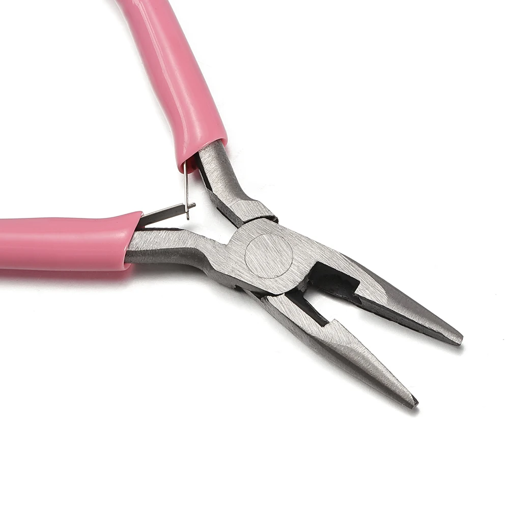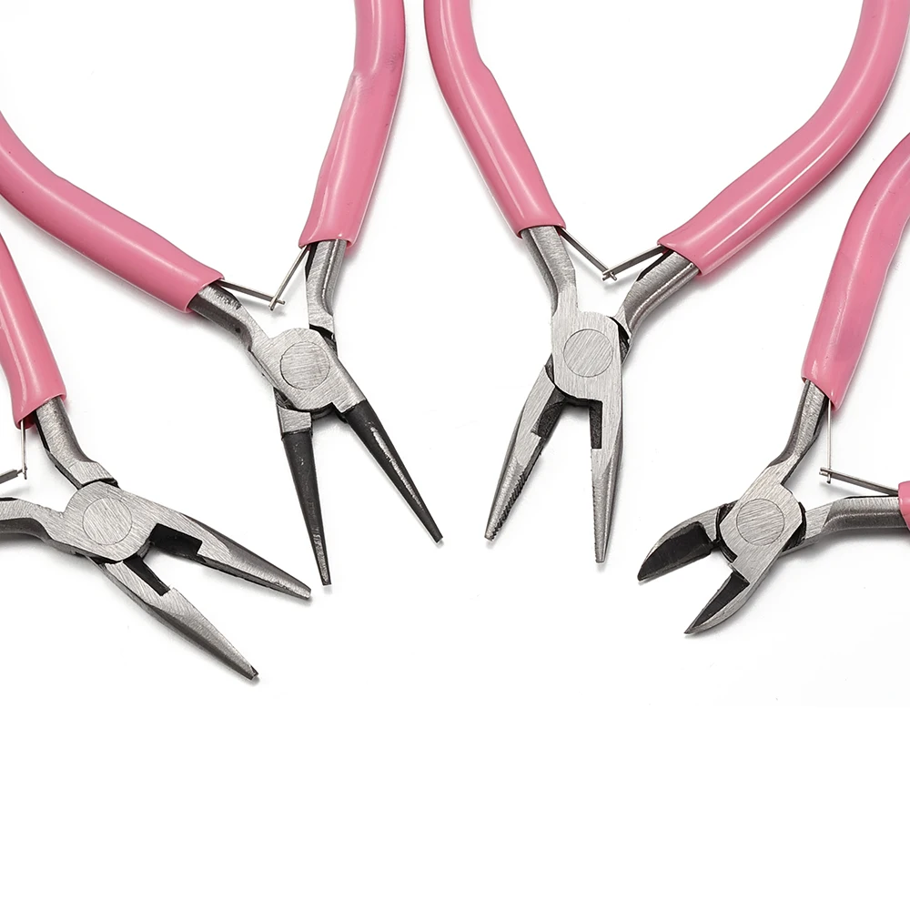 • Mini Jewelry Pliers Set DIY Jewelry Making and Fixing Tools Pink Handle with Scissors, Copper Wire Cutting, Oblique Pliers