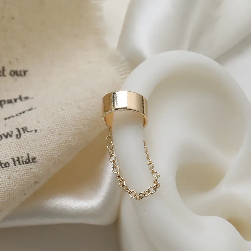 Fashion Punk Chain Ear Cuff for Women Clip on Earrings Gold Earcuff Without Piercing Earring Trendy Jewelry Gift