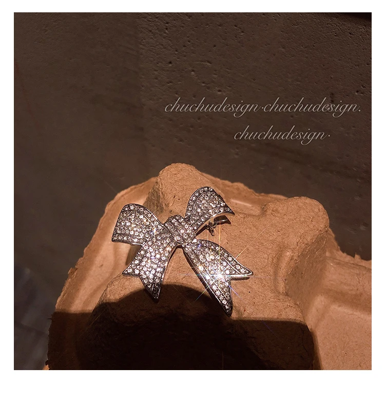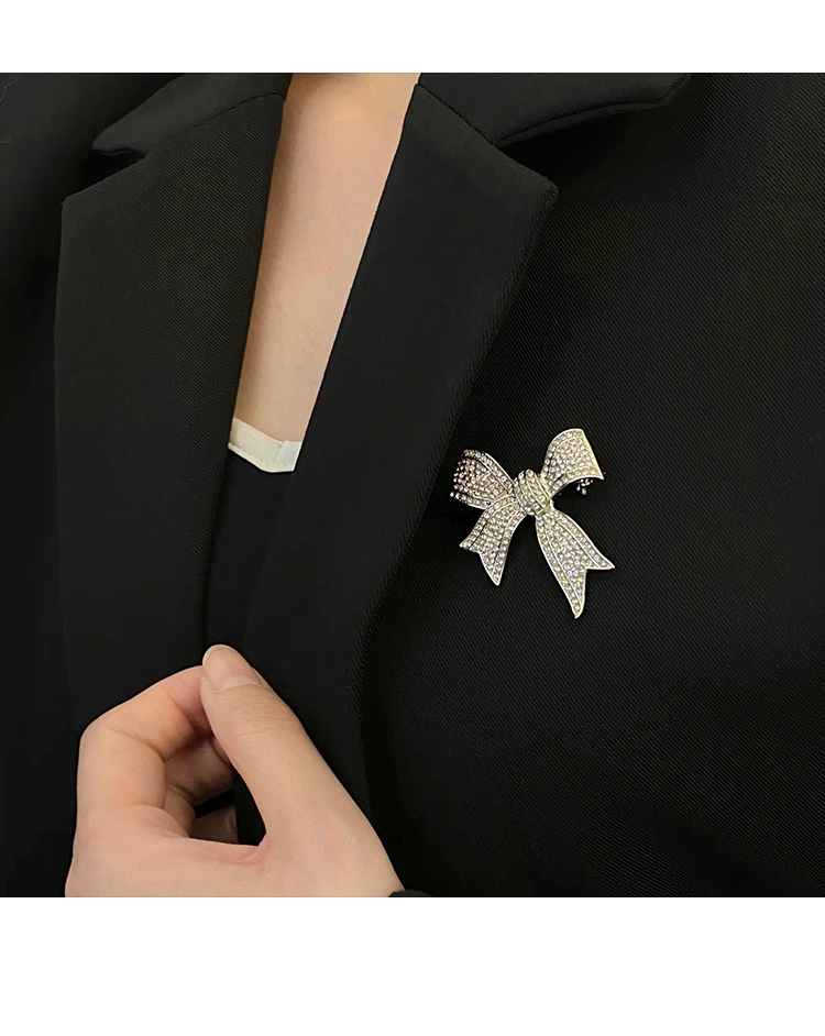 • Sense Inlaid Rhinestone Bow Shaped Brooch Korean Evening Dress Suit Accessories Jewelry Fashion Pin For Woman in 2021