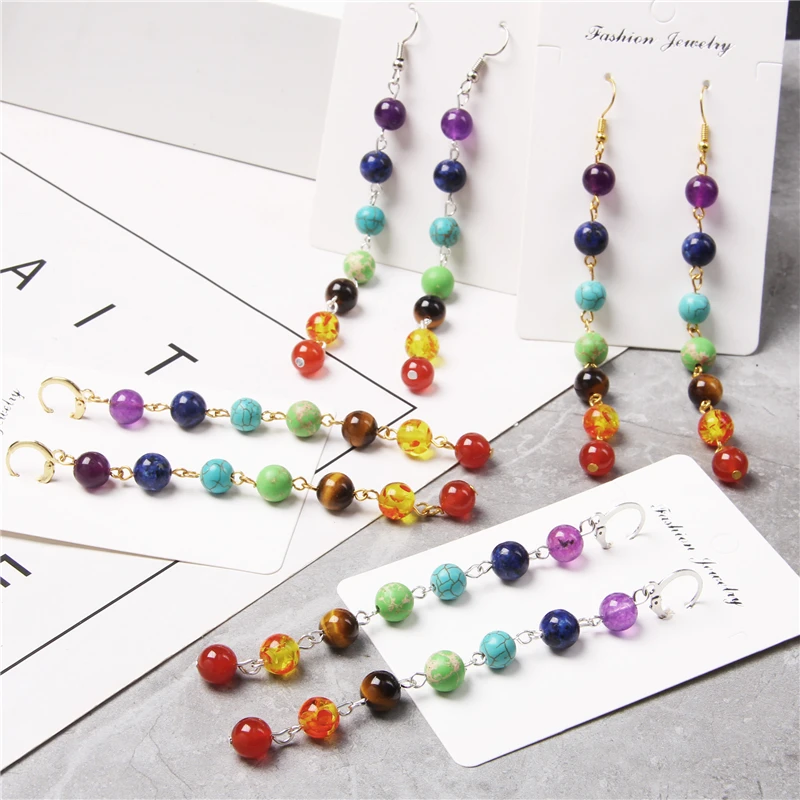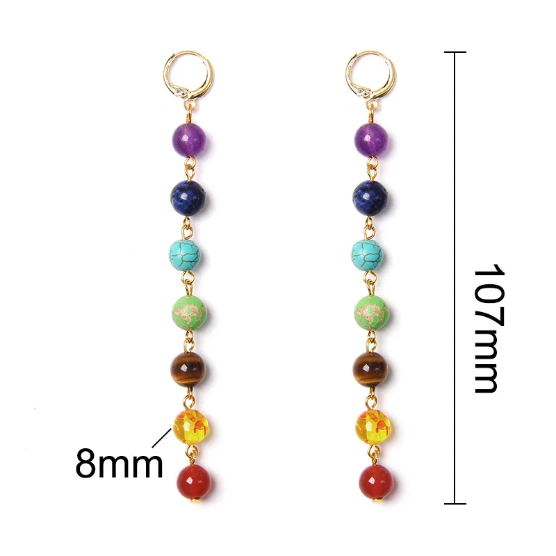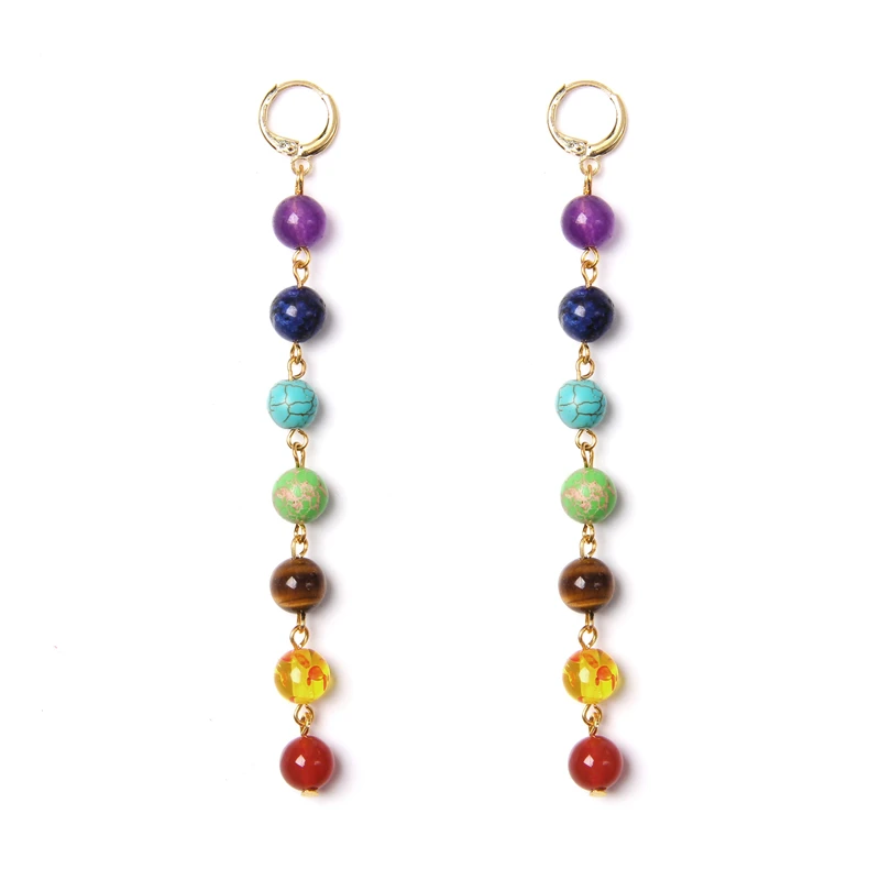 Chakra colors stone bead long Drop Earrings Bohemia Dangle Reiki Healing women earring Vacation BOHO Jewelry gift dropshipping