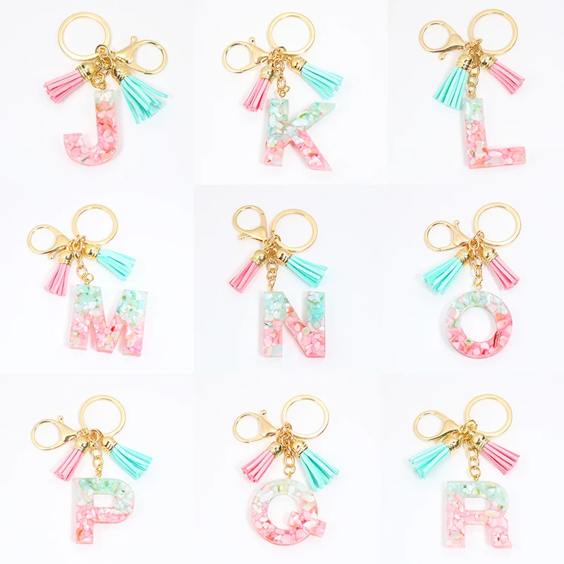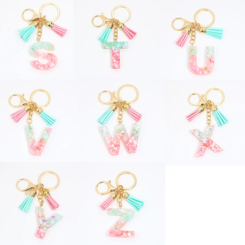 Acrylic Letter Keychains English Alphabet Crystal Women Key Chains Ring Tassels Keyring Holder Pendent Gift Accessory