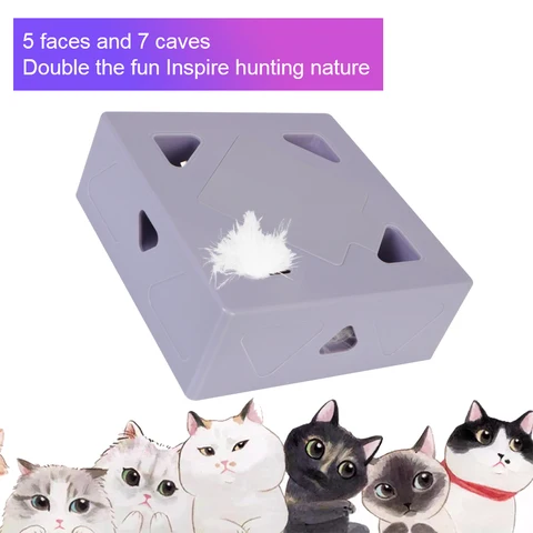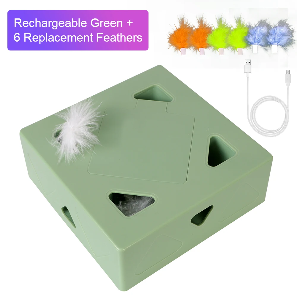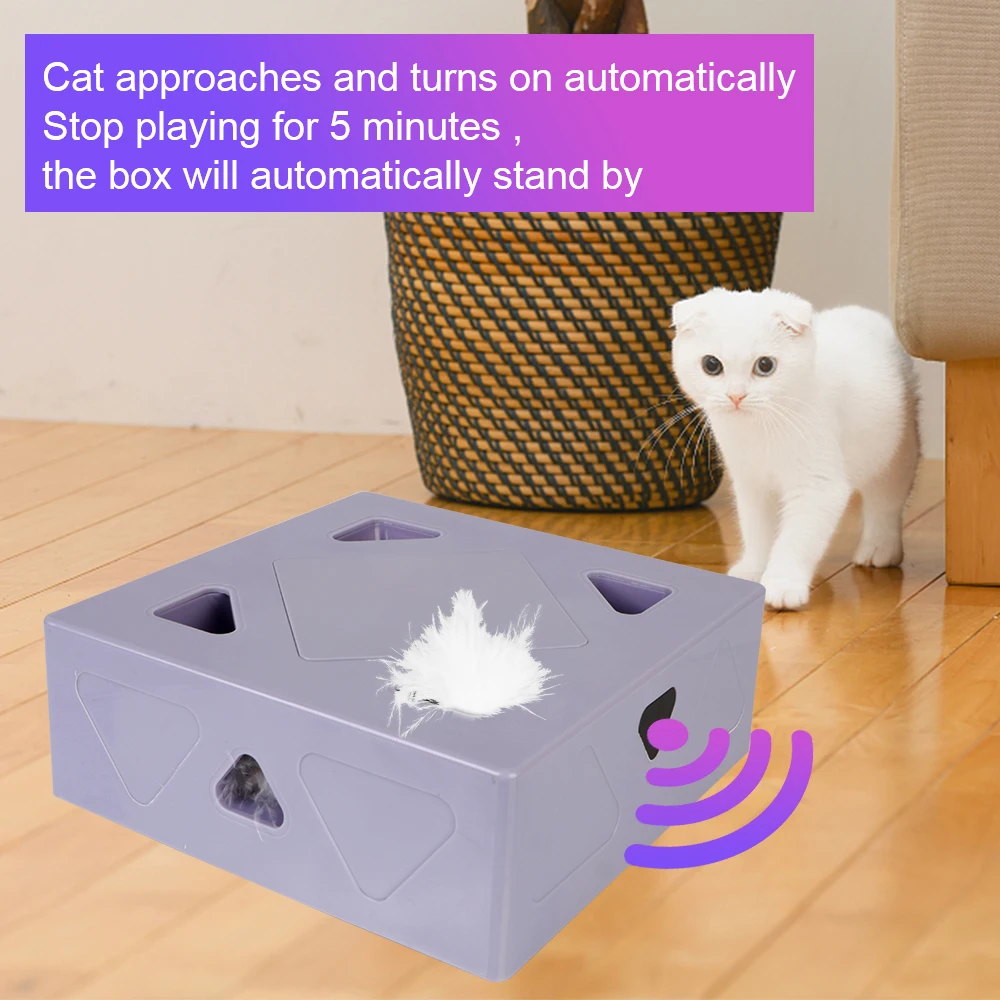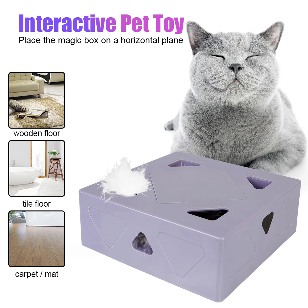 • Sqaure Magic Box Automatic Cat Feather Toy Teasing Cat Stick Game Cat Toy Selfplay Exercise Toys for Cat