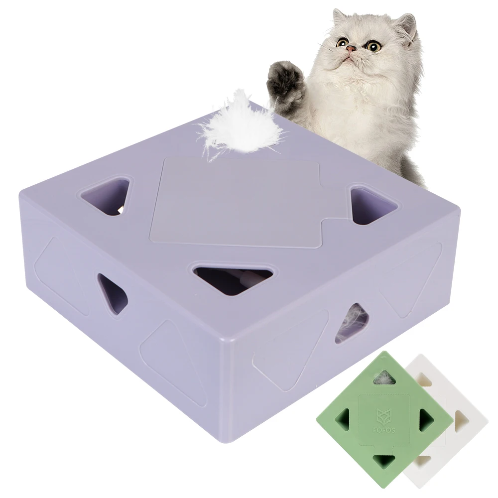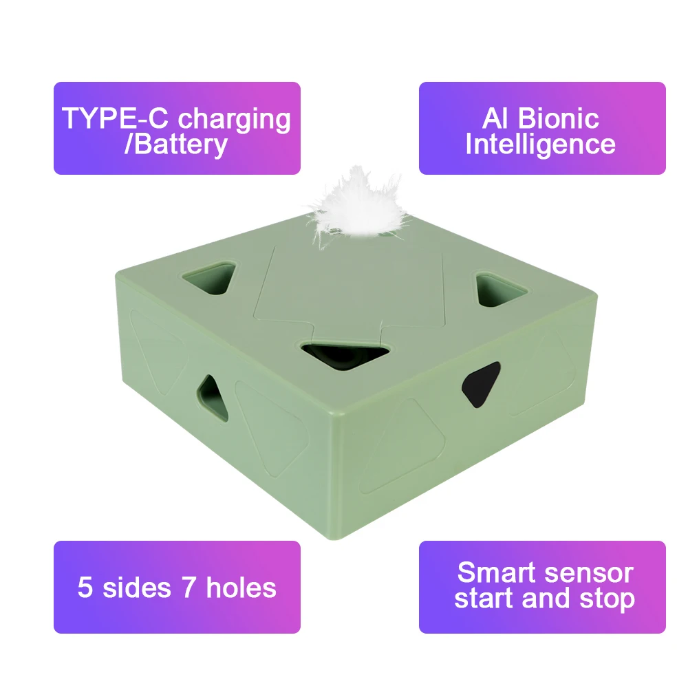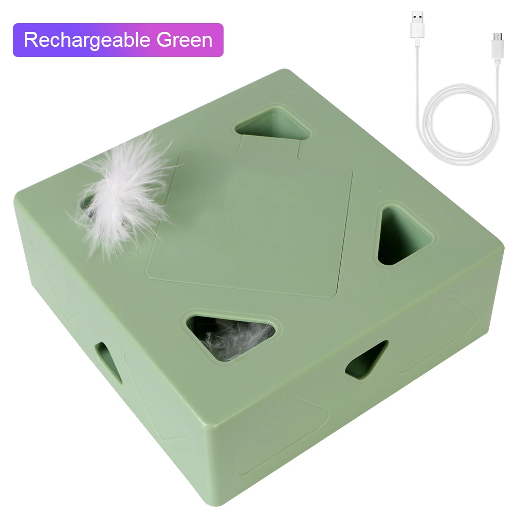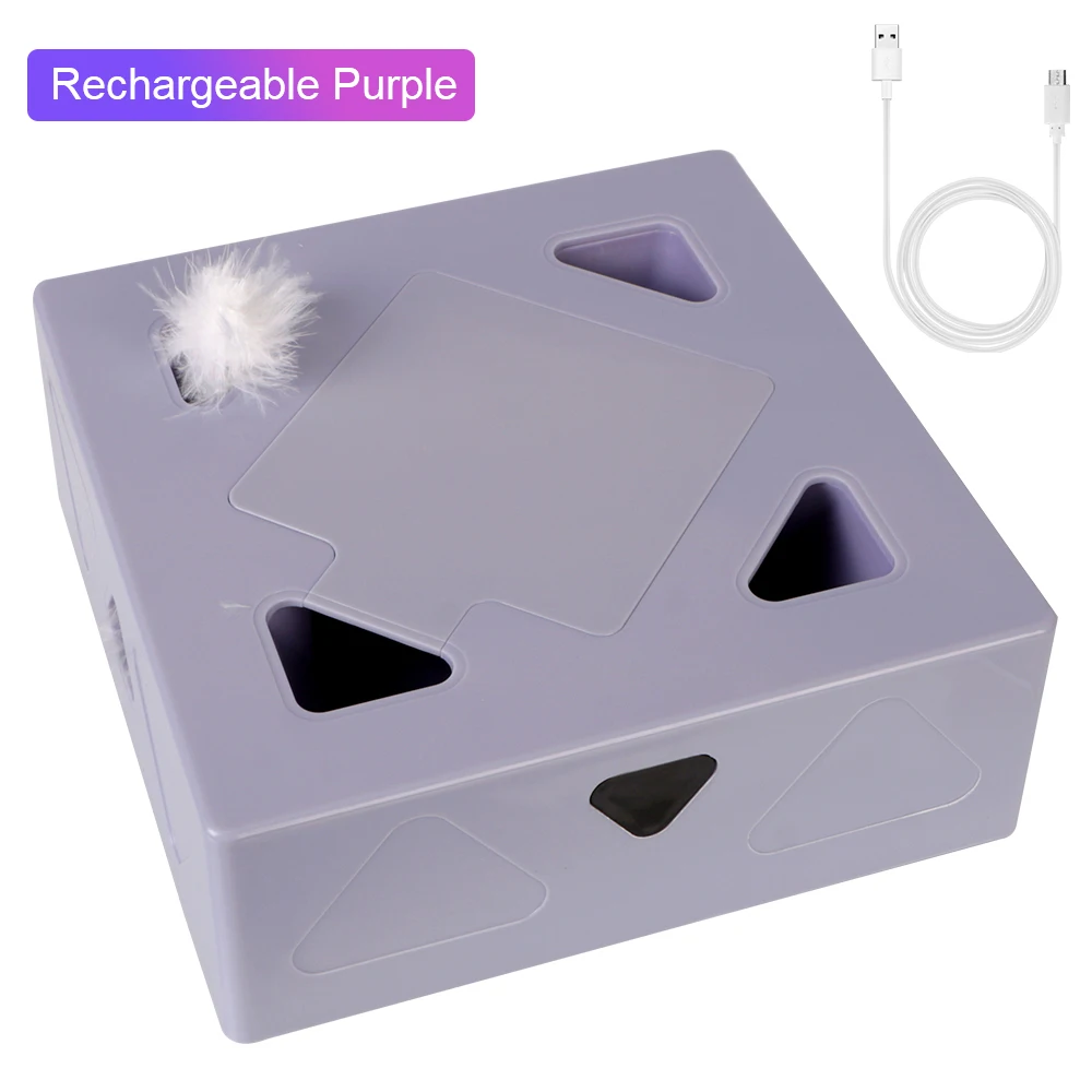 • Sqaure Magic Box Automatic Cat Feather Toy Teasing Cat Stick Game Cat Toy Selfplay Exercise Toys for Cat