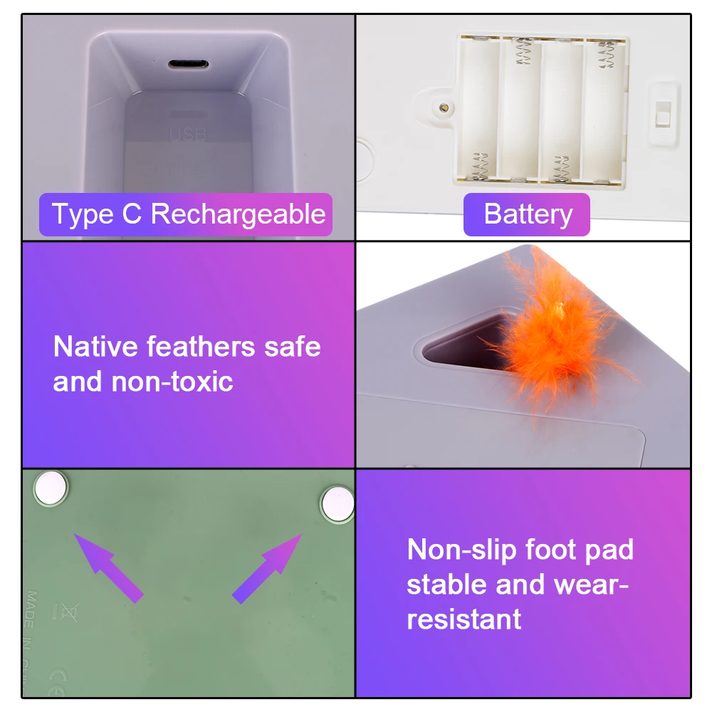 • The movement cat toy is polished smooth and safe to play, and non-slip rubber feet on the bottom keep the toy from sliding when cats play.