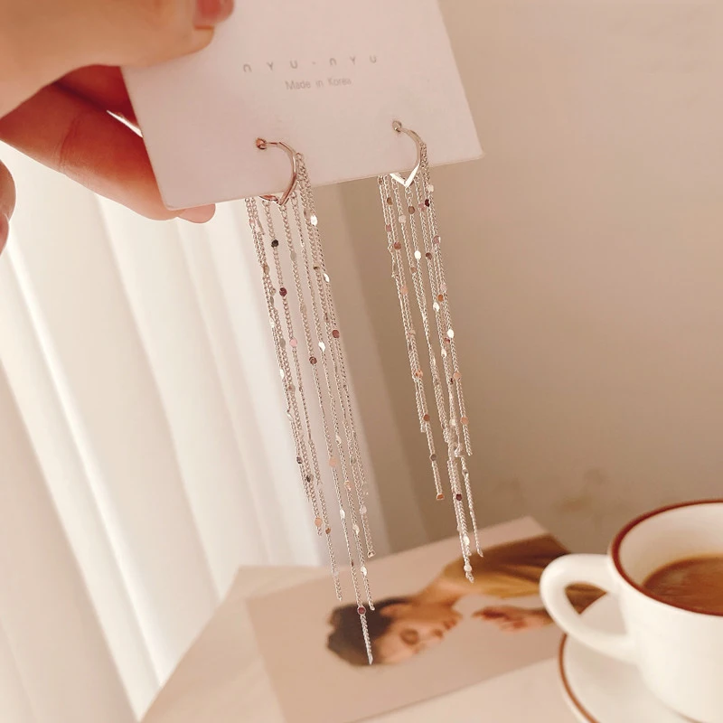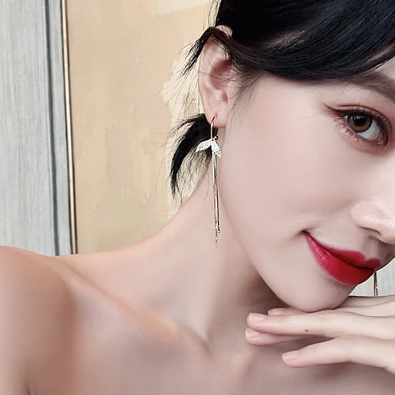 2021 New Arrival Fashion Long Metal Tassel Drop Earrings Korean Joker Sweet Lovely Heart Butterfly Fish Elegant Women Earrings