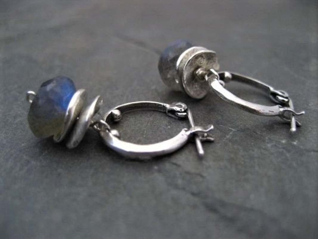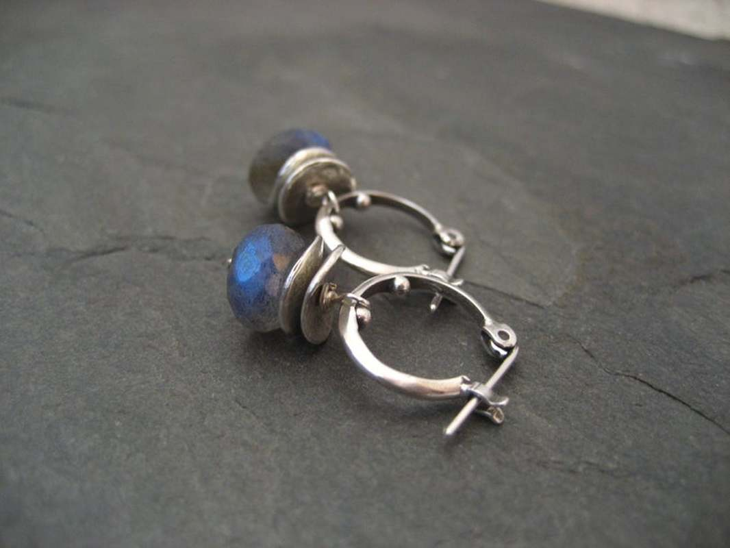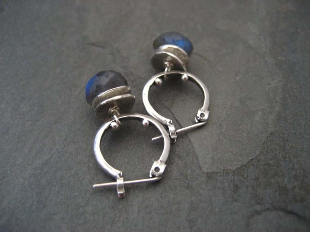 • Trendy Silver Color Women Hoop Earrings Metal Inlaid Blue Stone Dangle Earrings for Women Engagement Party Fashion Jewelry
