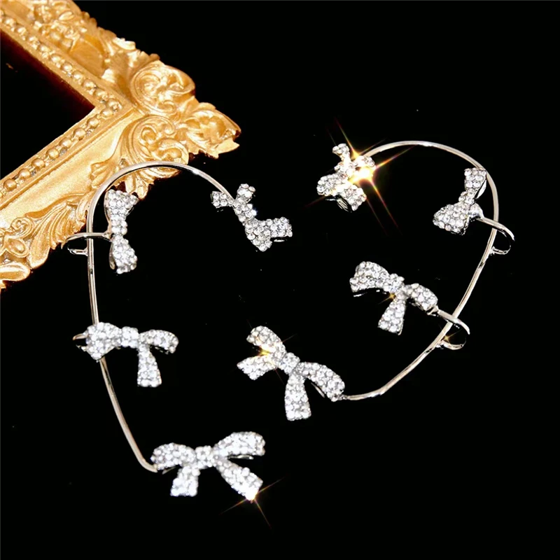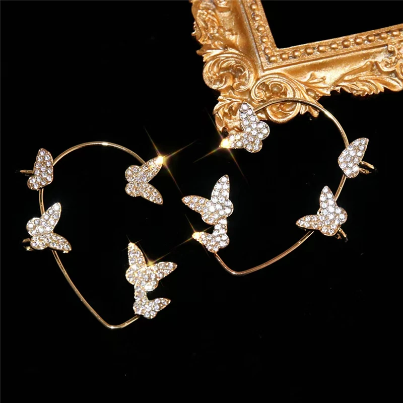 • Silver Color Rhinestone Tassel Ear Clips Ear Cuff For Women Shiny Cubic Zirconia Butterfly Clip Earrings Wedding Jewelry
