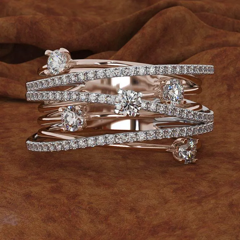 • Female Crystal Zircon Stone Ring Cute Fashion Rose Gold Color Ring Promise Love Wedding Engagement Rings For Women