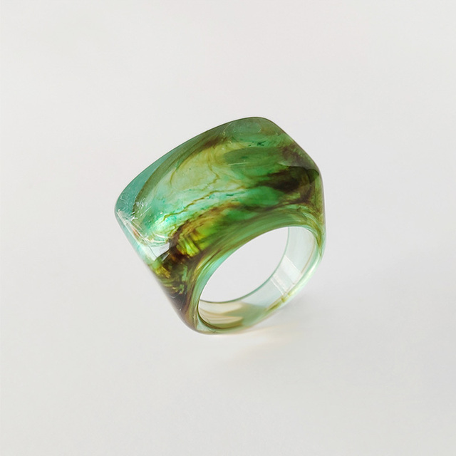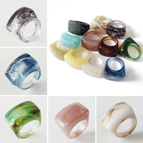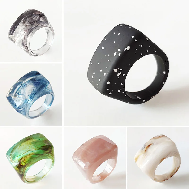 • Fashion Acrylic Geometric Irregular Rings Glass Ball Transparent Resin Colorful Ring Set For Women Delicate Jewelry Gifts
