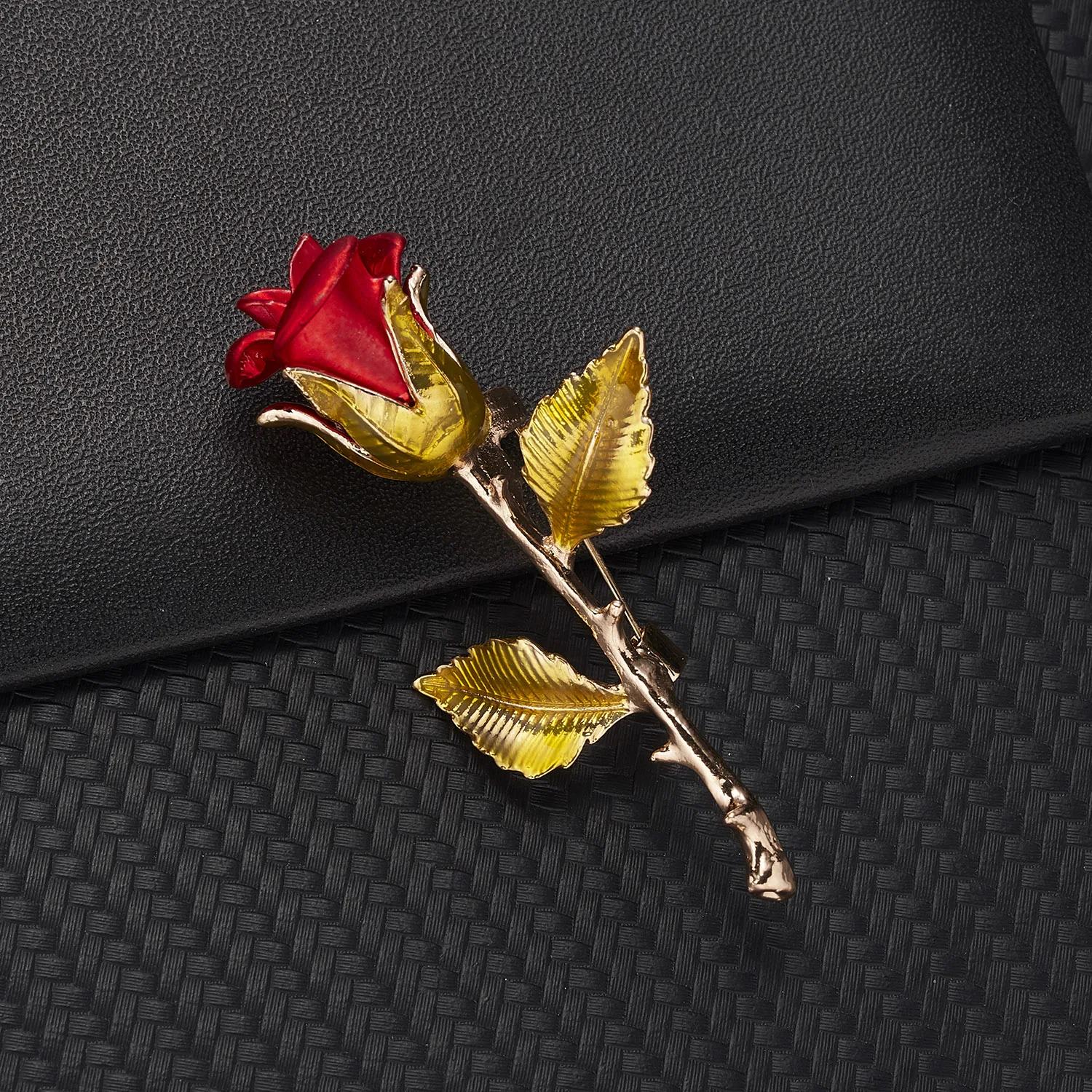 Rose Flower Rhinestone Brooch Pin for Women Fashion Wedding Christmas Party Coat Dress Suit Jewelry Valentine's Day Gift