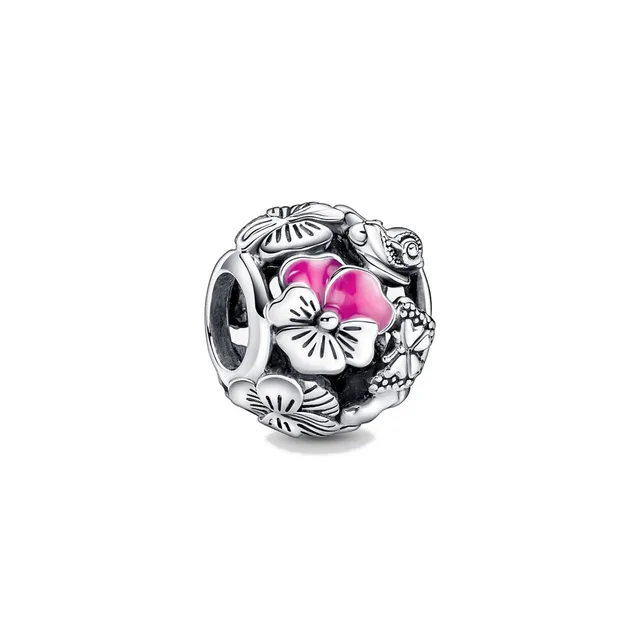 925 Sterling Silver Spring Pink Flower Friends Clip Envelope Curled Caterpillar Beads Fit Pandora Charms Bracelet Jewelry