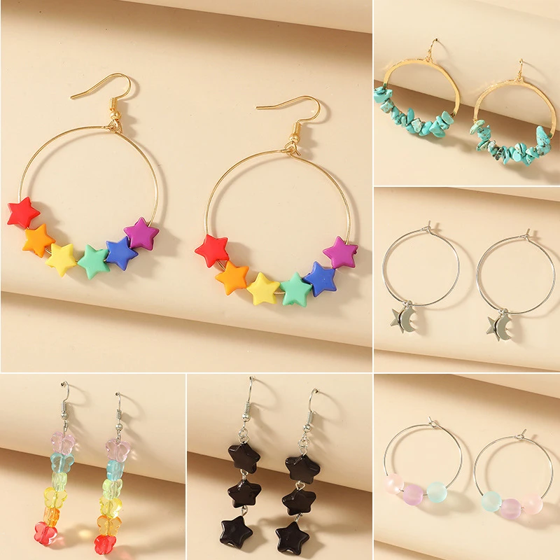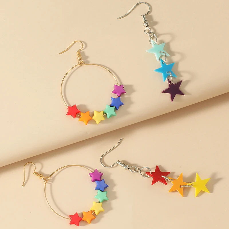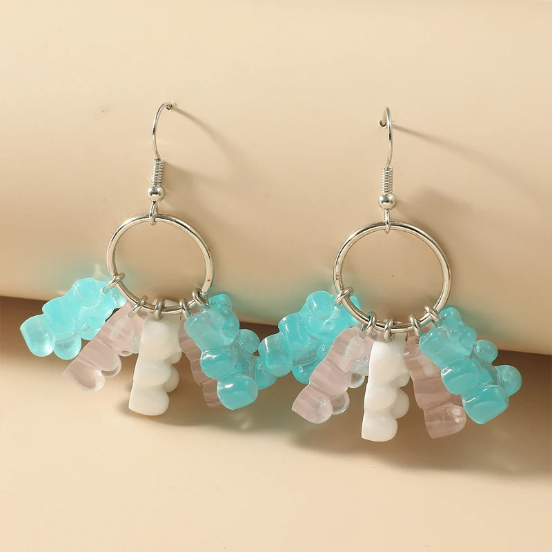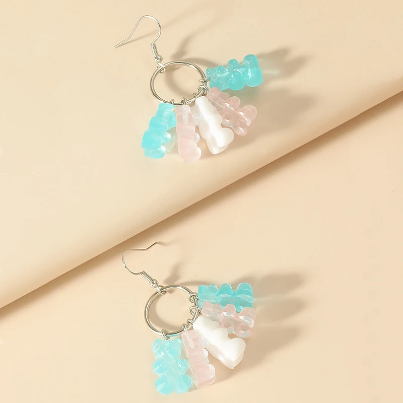 Star Shaped Pendant Drop Earring Resin Candy Color Butterfly Bear Cute Dangle Earrings Girl Party Gift Jewelry Supplies