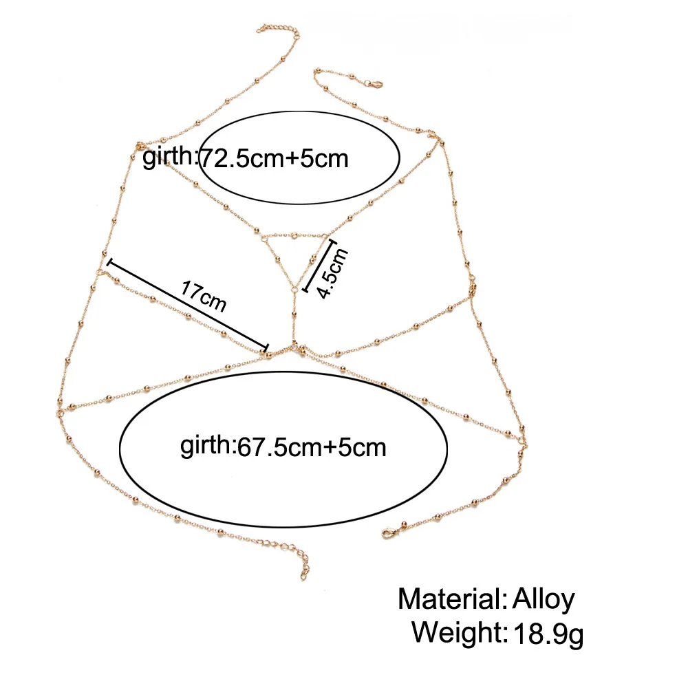 • Jewelry Sexy Chest Chain Bikini Belly Chains for Women Cross Waist Chains Female Body Suit Girl Fashion Beach Simple Luxury