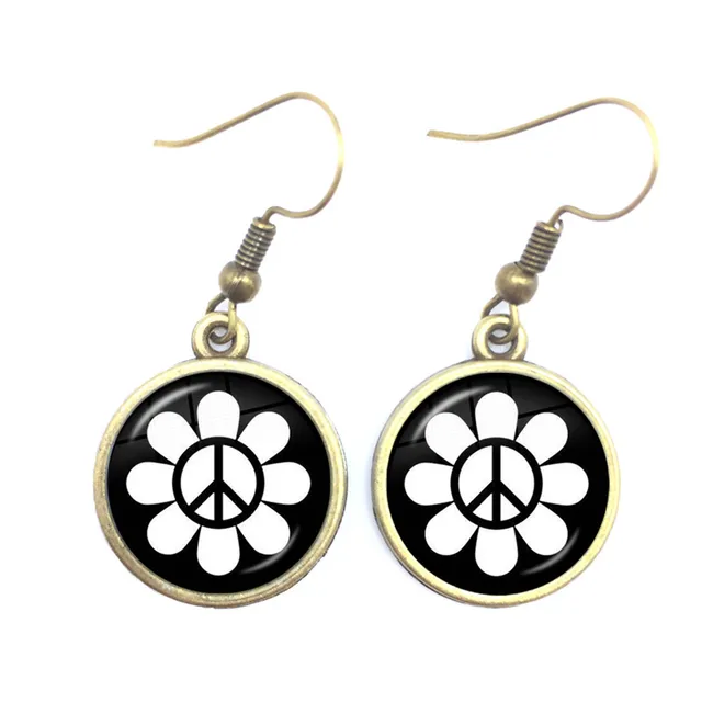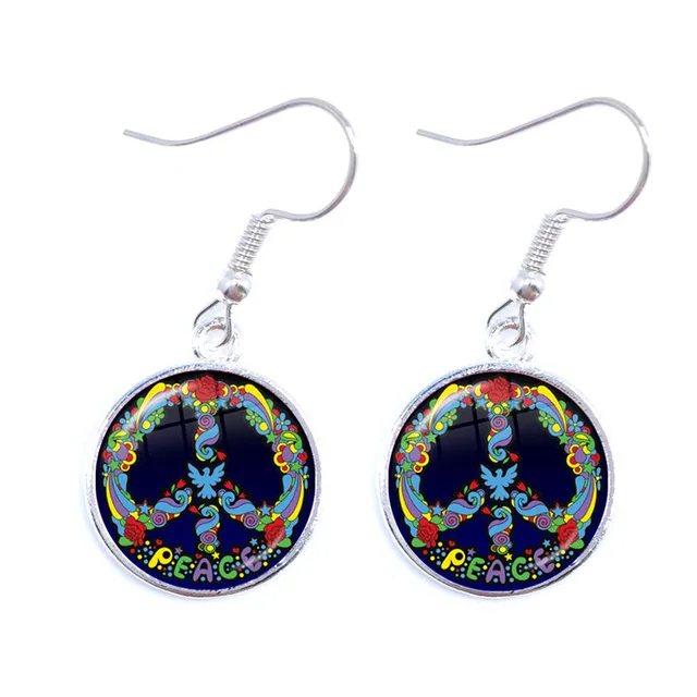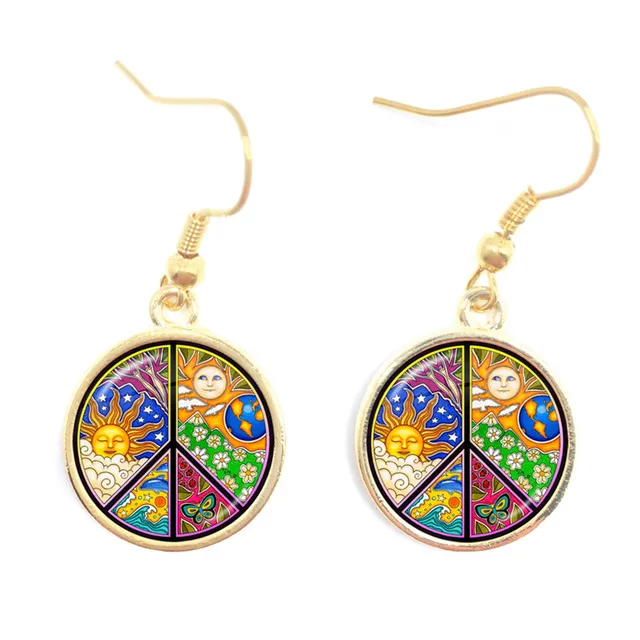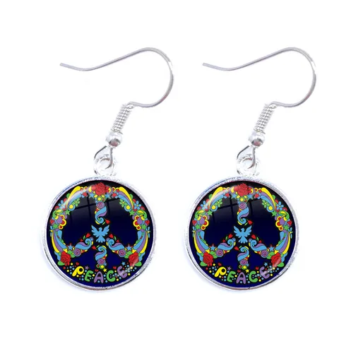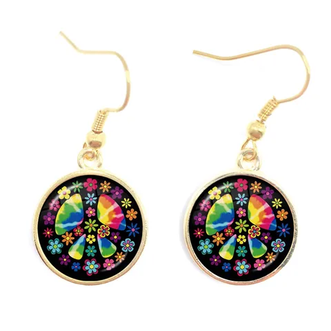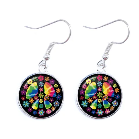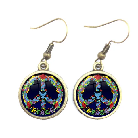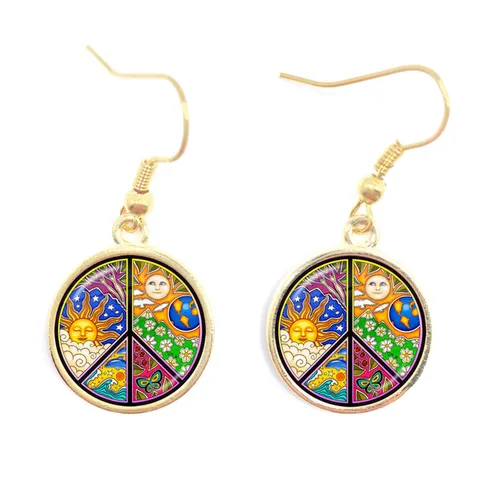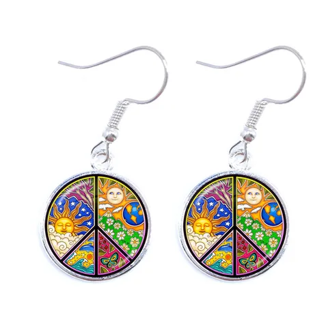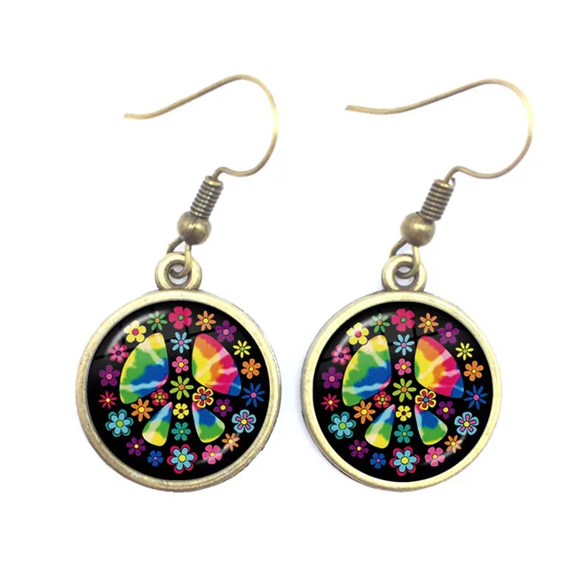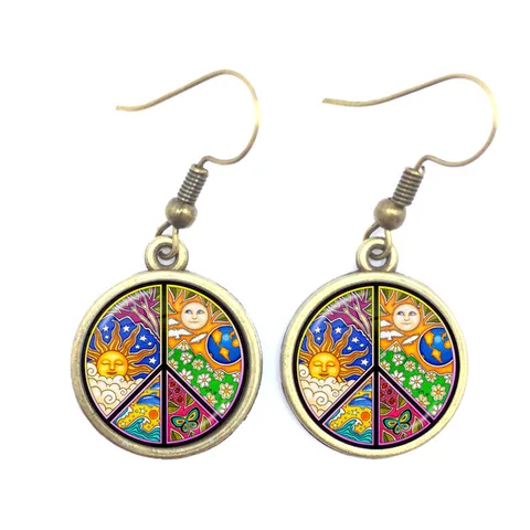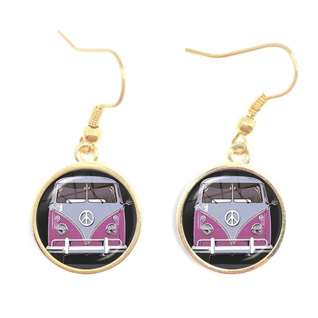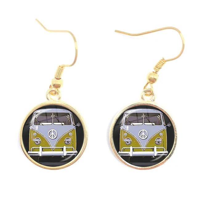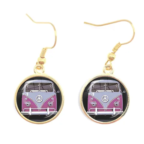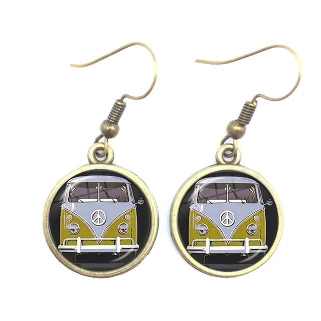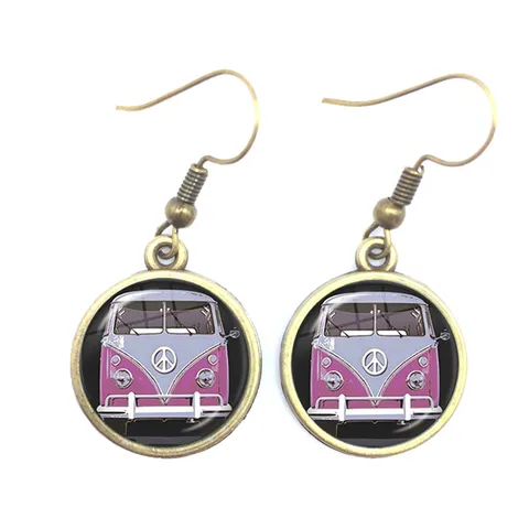 • Blue-Red-Yellow Hippie Peace Van Bus Photo Drop Earrings Retro Beach Bus Car Collectors Bus Peace Sign Jewelry For Women