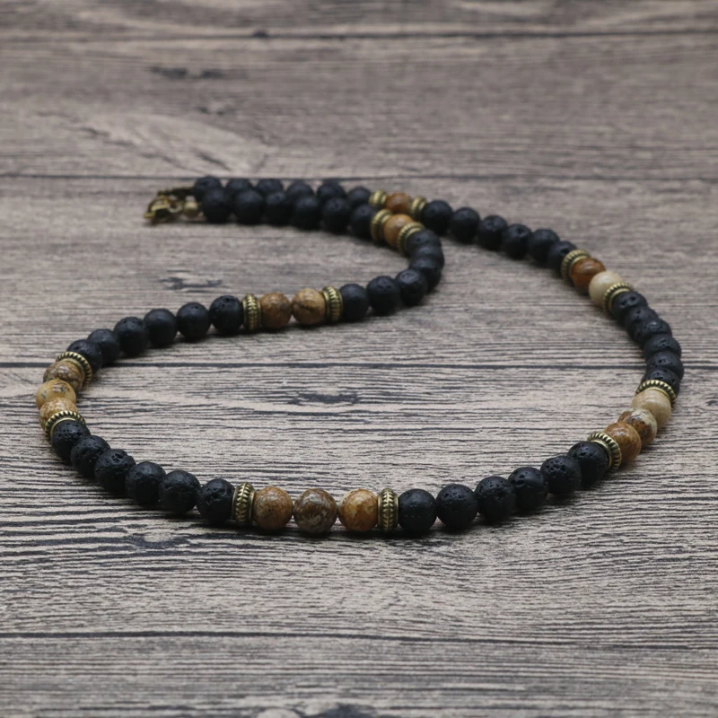 2019 Simple Natural Tiger Eye Stone Mens Bead Necklaces Surfer Unique Beaded Necklace for Men Gift For Him SU-15