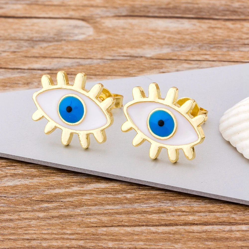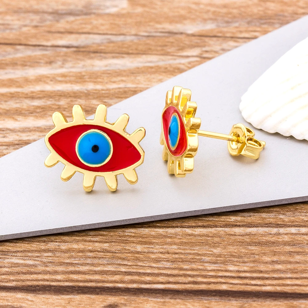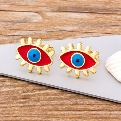 • Rainbow Stud Earrings Gold Color Evil Eye Shape Korean Earrings Copper CZ Charms Jewelry Gift For Female Girls