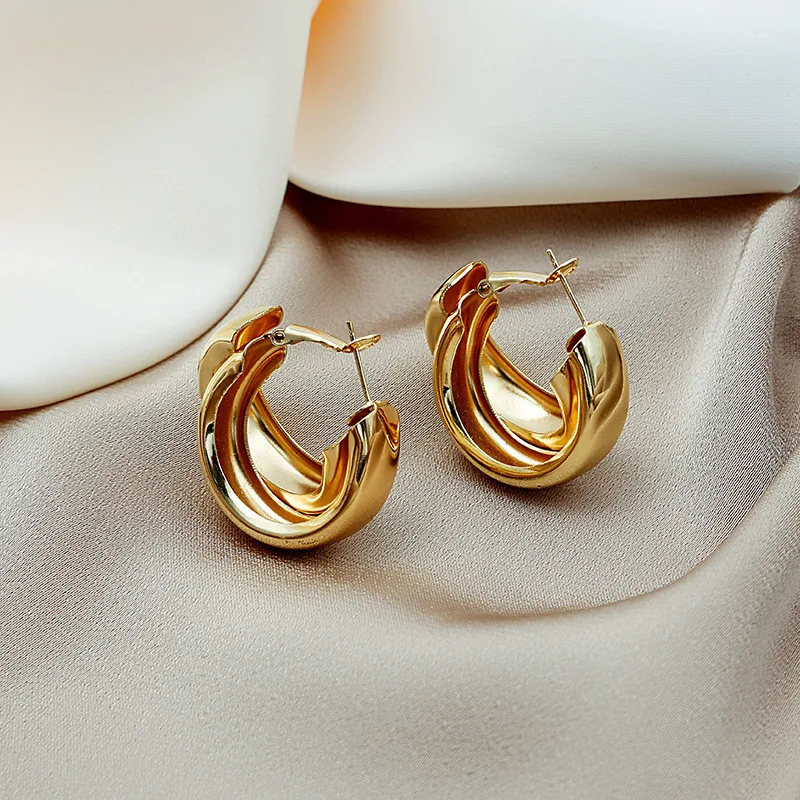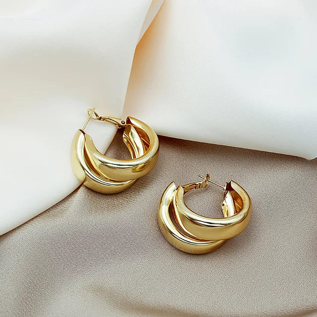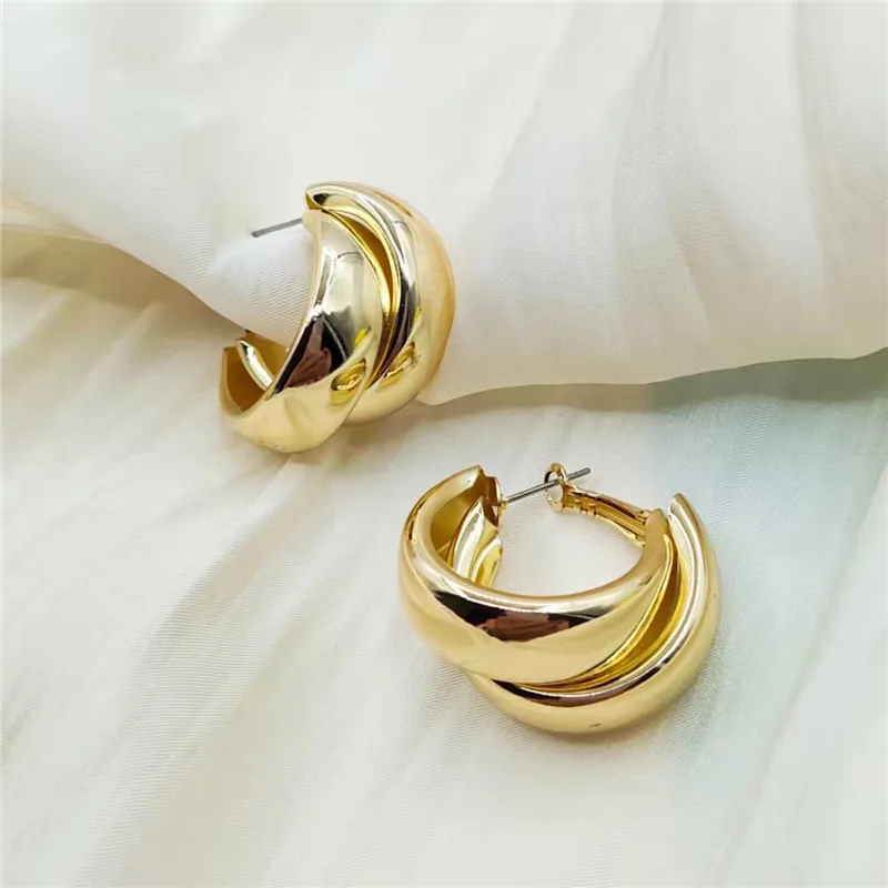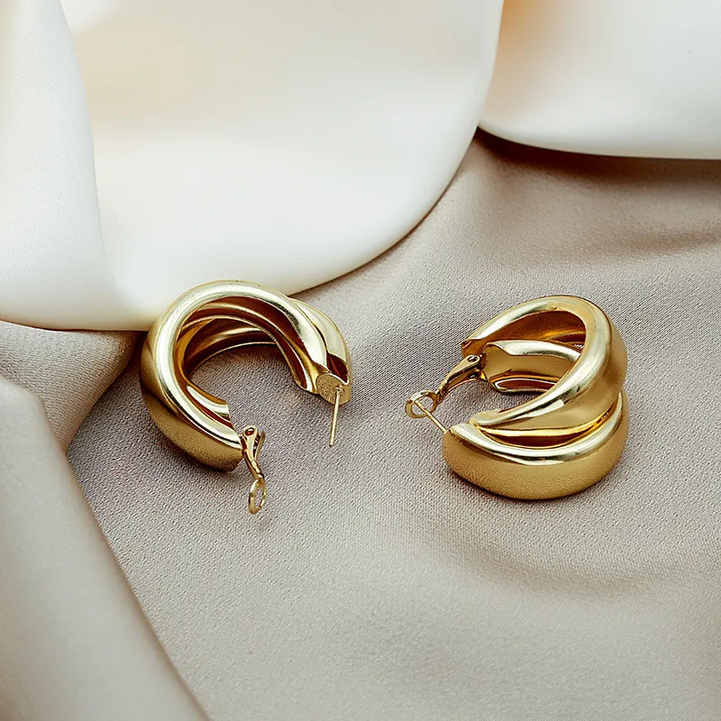 Simple Double Circle Hoop Earrings For Women Girl Gold Circle Round Minimalist Earrings 2022 NEW Party Jewelry Gift