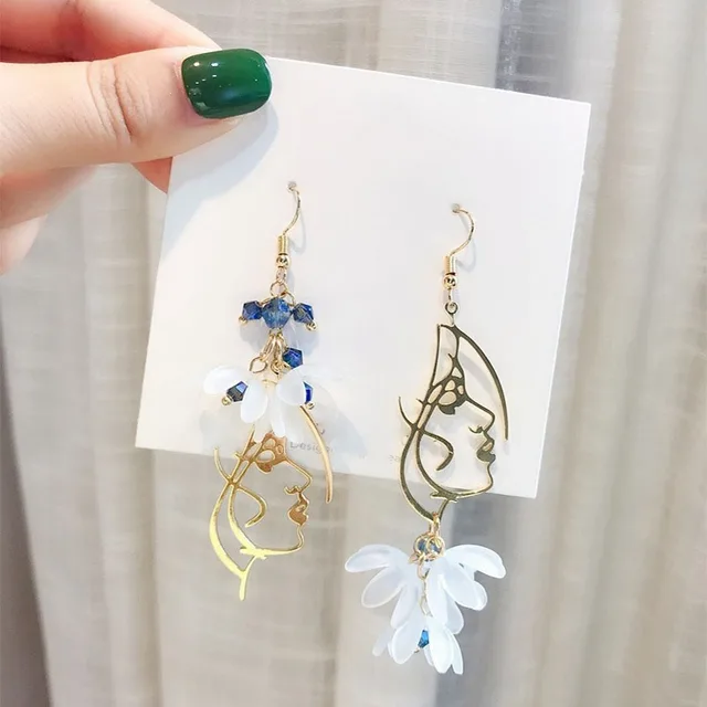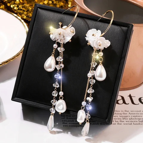 Fashion Rose Petal Drop Earrings for Women Crystal Rhinestone Flower Long Tassel Dangle Earrings Female Wedding Party Jewelry Gift
