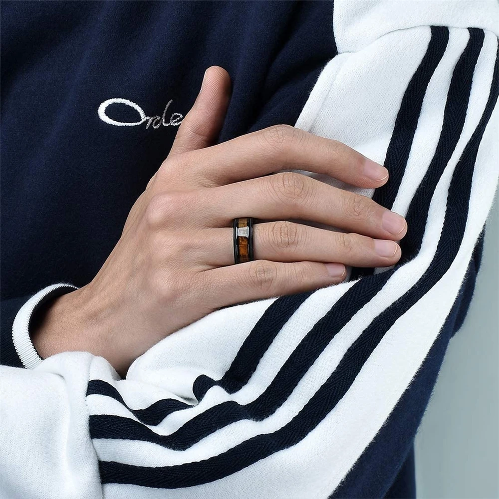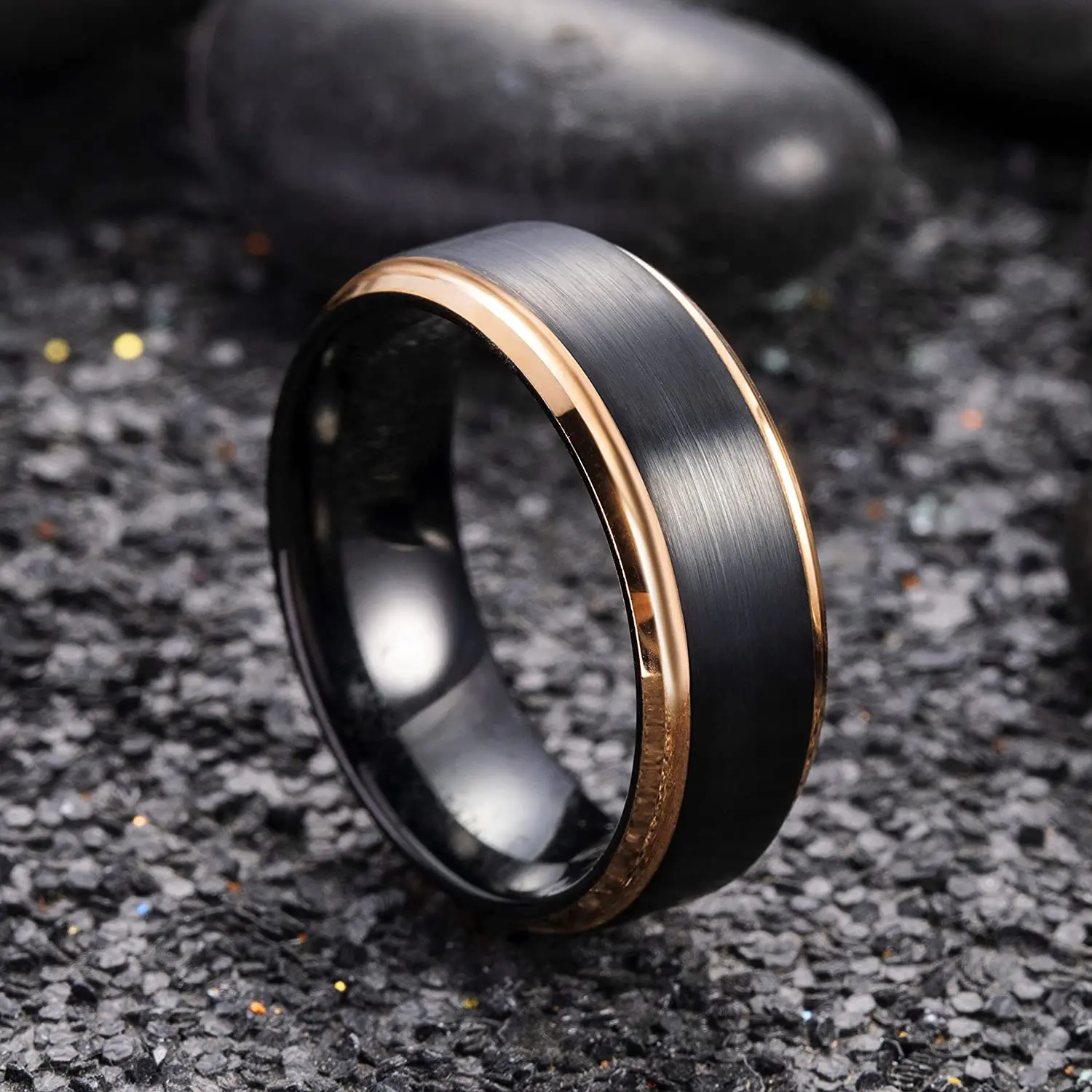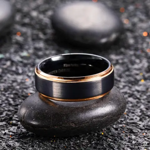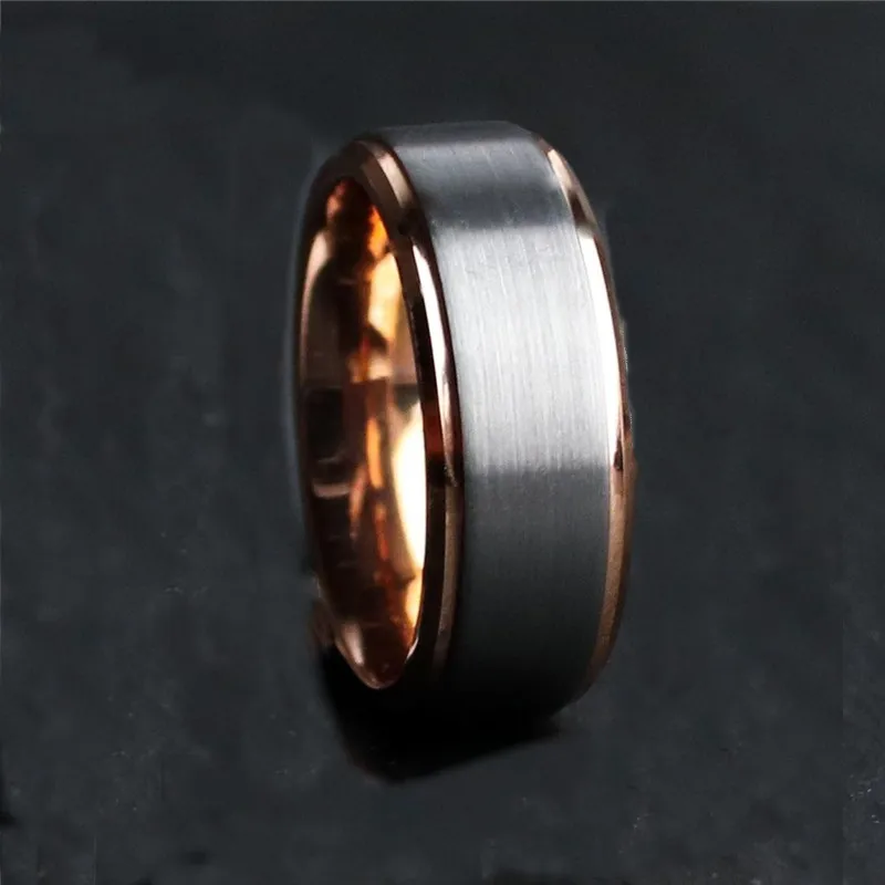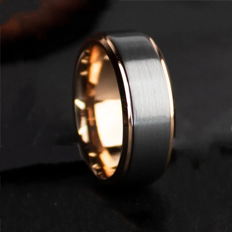 Luxury Jewelry Accessories Mens 8mm Tungsten Ring Rose Gold Black Brushed Stainless Steel Wedding Rings for Men Comfortable Fit