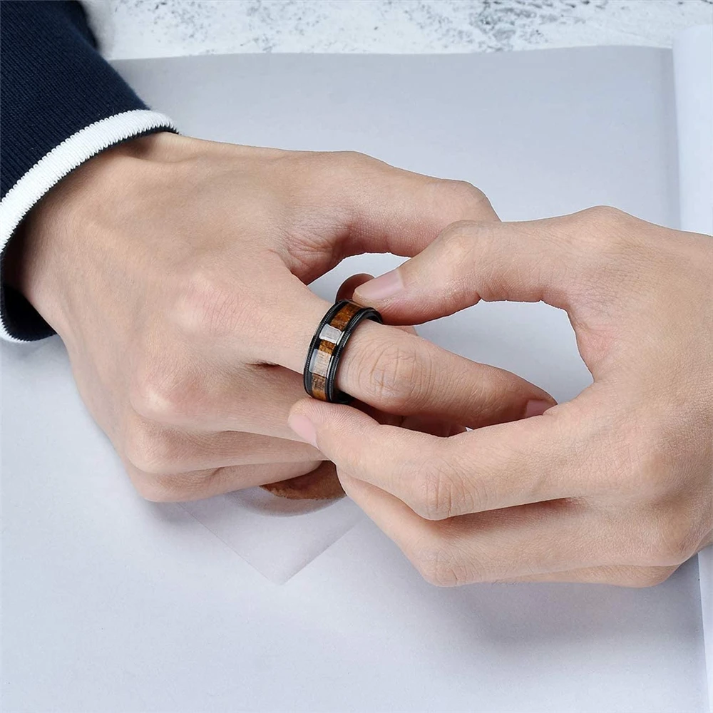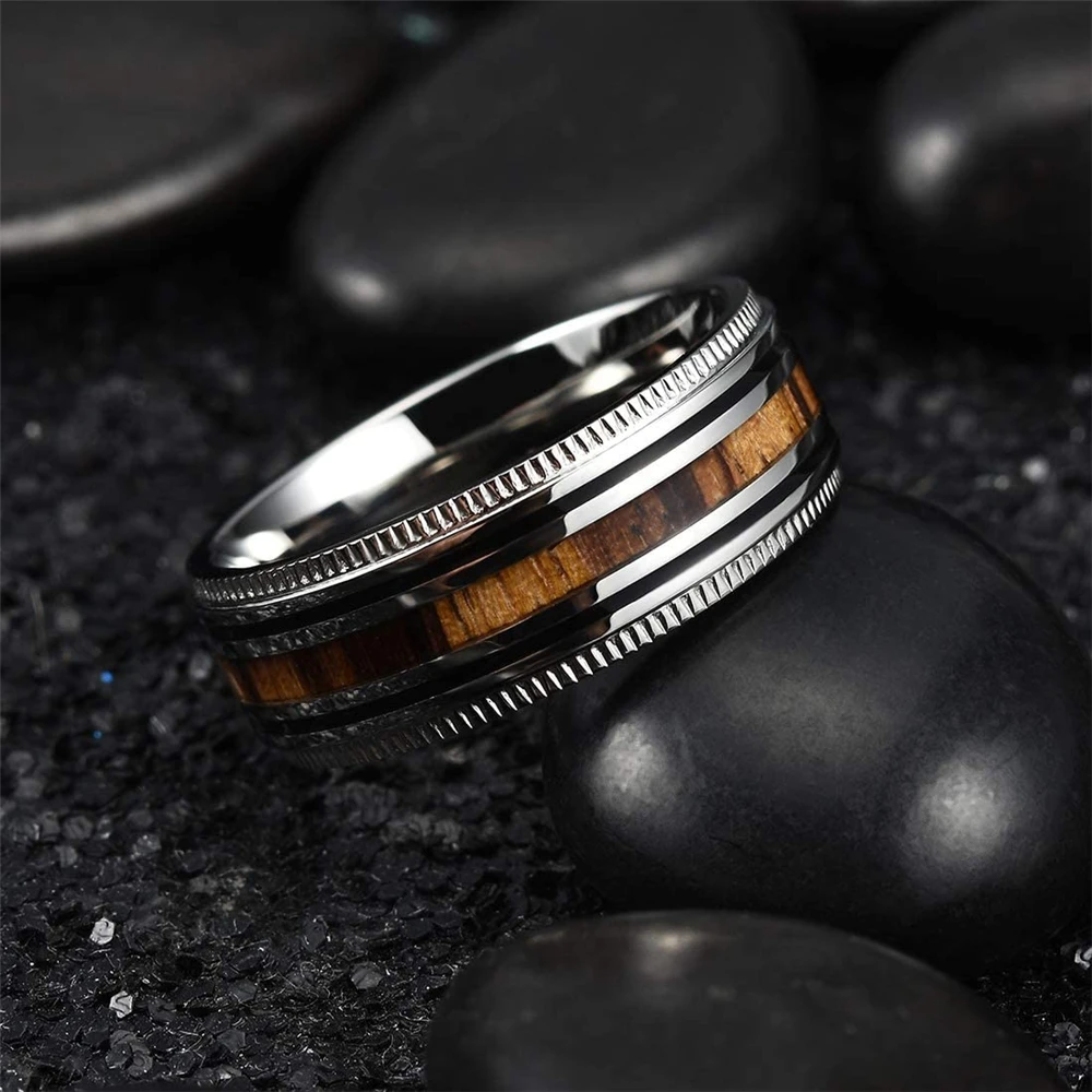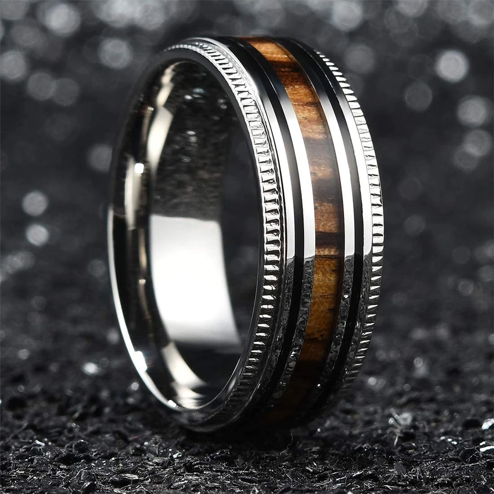 Luxury Jewelry Accessories Mens 8mm Tungsten Ring Rose Gold Black Brushed Stainless Steel Wedding Rings for Men Comfortable Fit