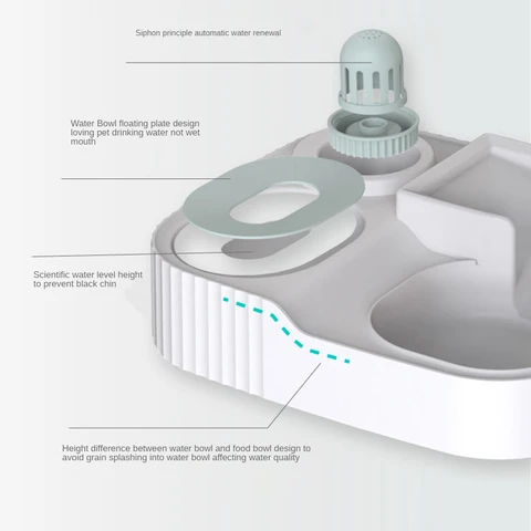 • Cat Bowl Dual-Use Dog for Feeder Bowls Kitten Automatic Food Drinking Fountain 3L Capacity Puppy Feeding Waterer Products