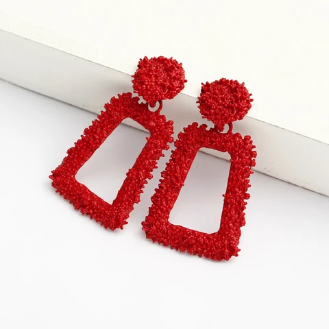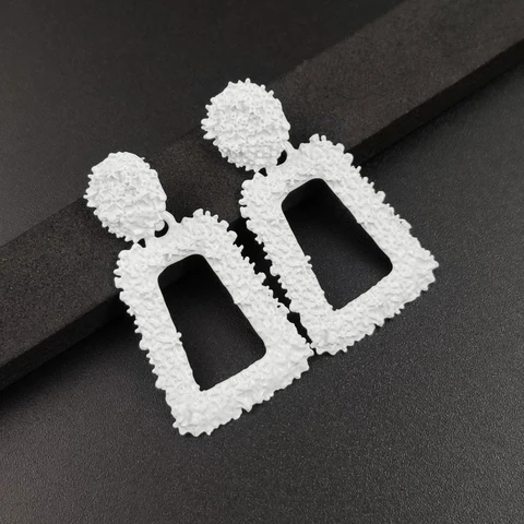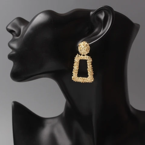 • Hollow Geometric Trapezoid Drop Earrings for Women Personality Punk Carved Metal ZA Brincos Jewelry Trendy Xmas Girl Gift