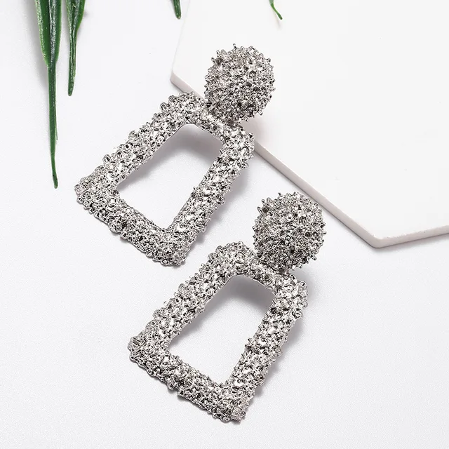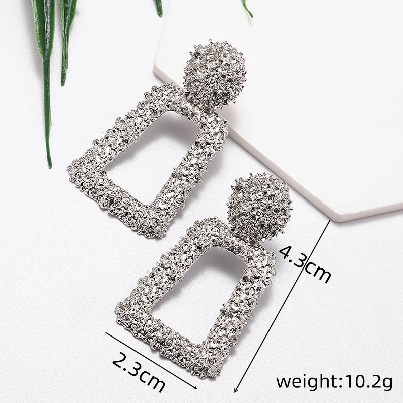 Hollow Geometric Trapezoid Drop Earrings for Women Personality Punk Carved Metal ZA Brincos Jewelry Trendy Xmas Girl Gift