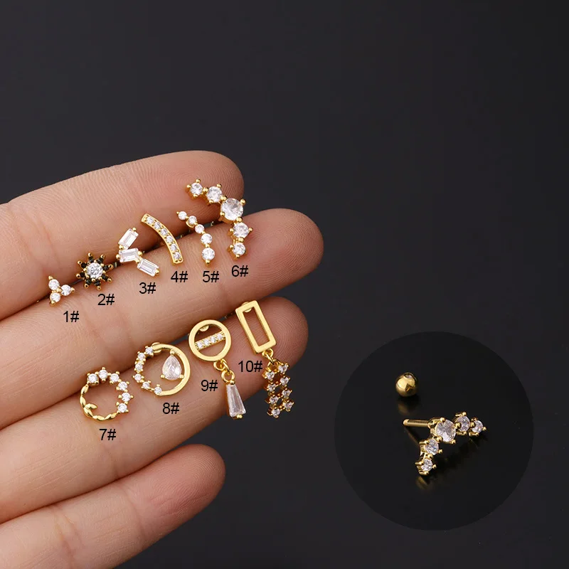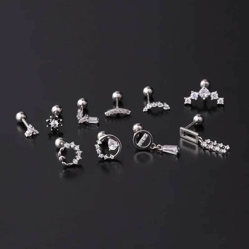 1Piece 16G Stainless Steel Thick Rod Piercing Stud Earrings for Women 2021 Jewelry Zircon Earrings for Teens Ear cuff