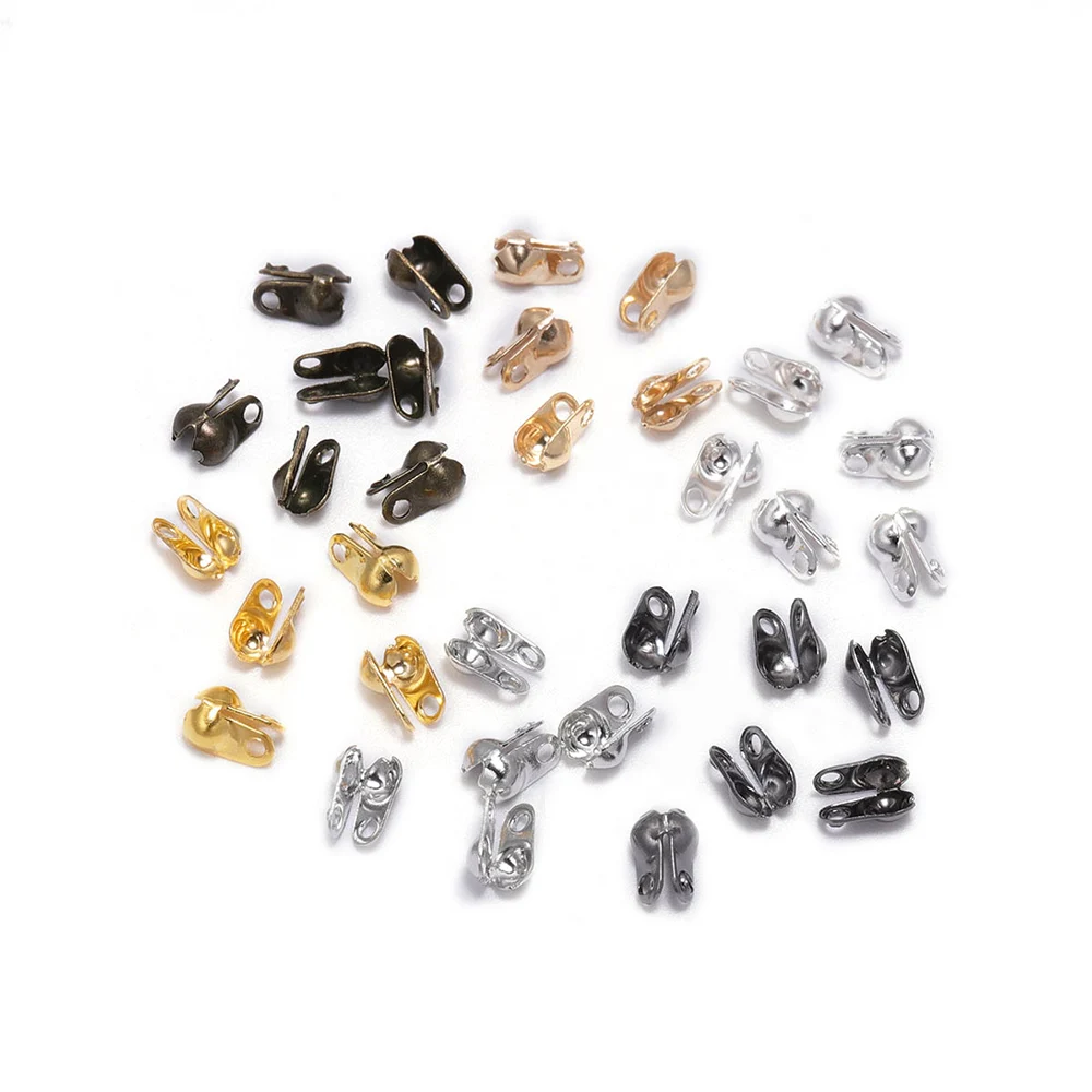 200pcs 1.5 2.4 3.2mm Ball Chain Clasps Calottes End Crimps Beads Ball Necklace Chain Connectors Findings For DIY Jewelry Making