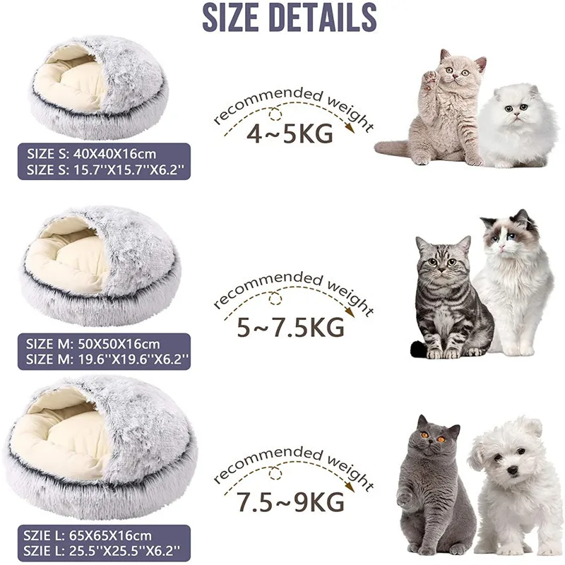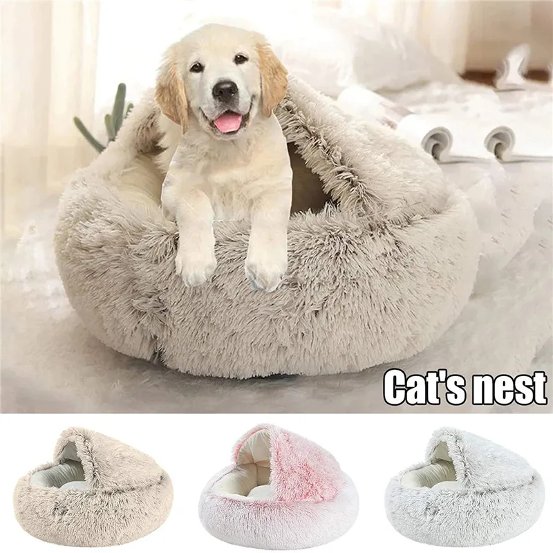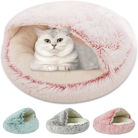 Winter Long Plush Pet Cat Bed Round Cat Cushion Cat House 2 In 1 Warm Cat Basket Cat Sleep Bag Cat Nest Kennel For Small Dog Cat