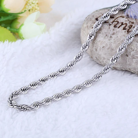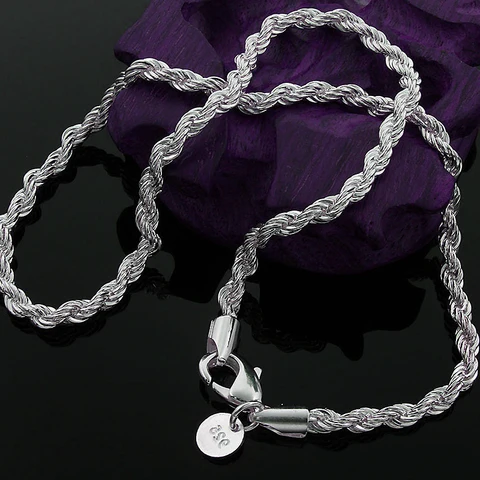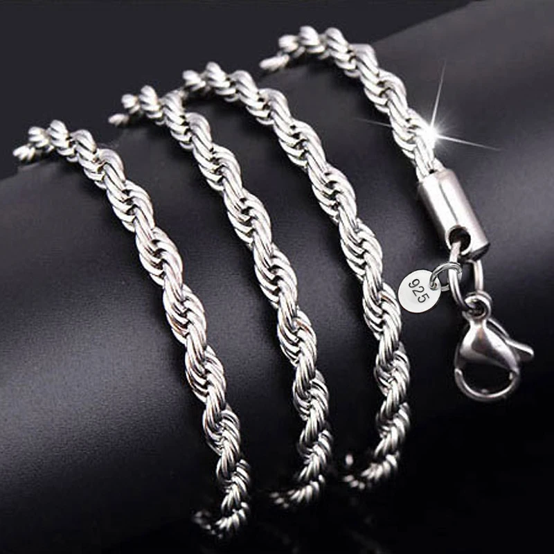 • Sale Retail Wholesale Silver Plated Necklace Women Man Necklace 2mm16,18,20,22,24 Inch Twist Rope Chain Jewelry Accesory
