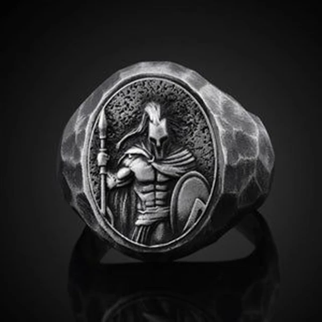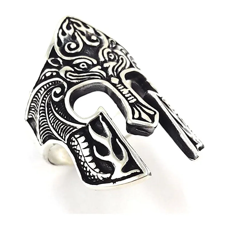 • Spartan Warrior Helmet Ring For Men Gothic Punk Viking Norse Rune Warrior Rings Totem Amulet Jewelry
