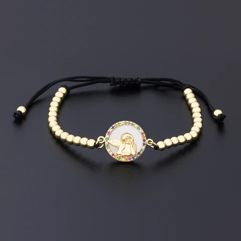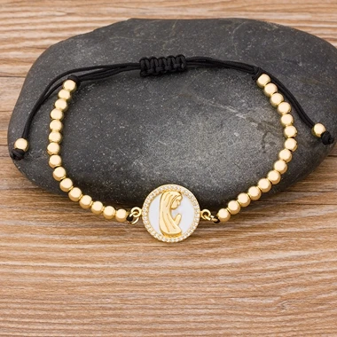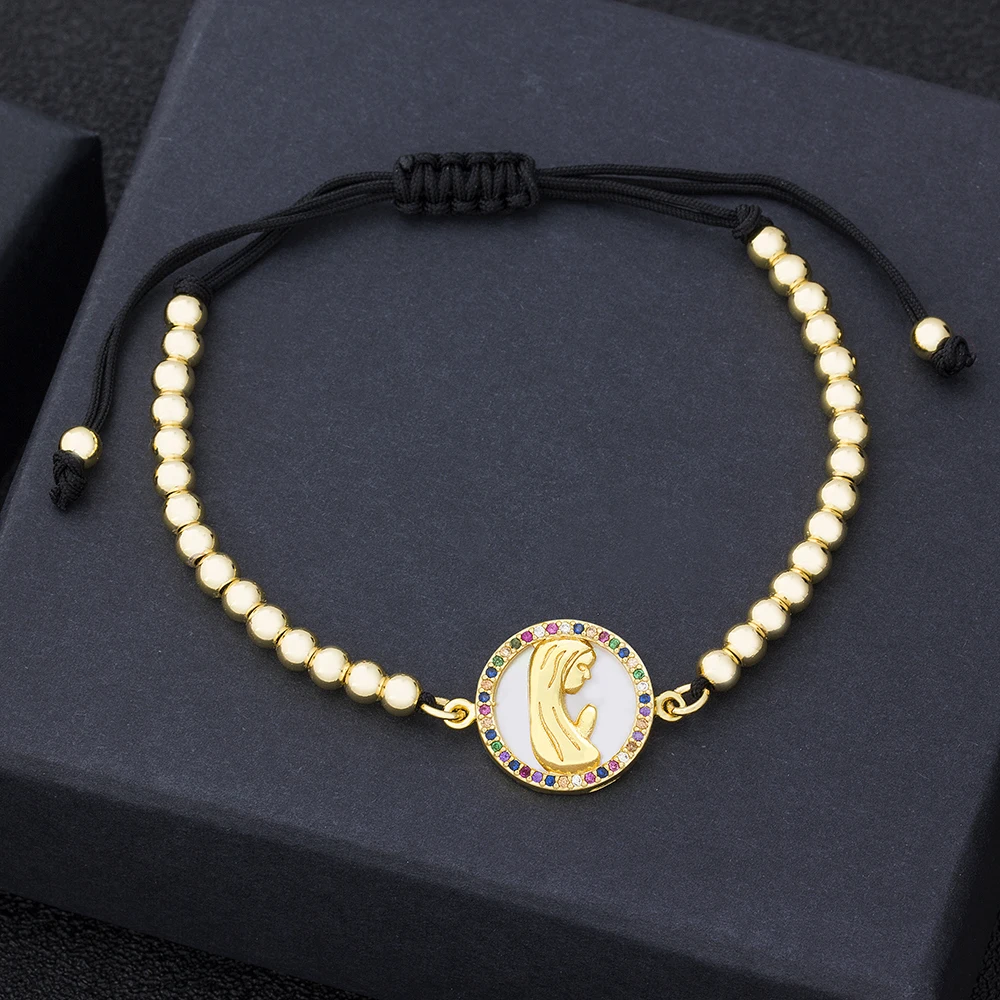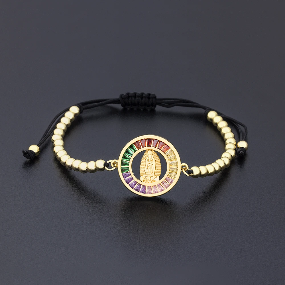 Handmade Tree of Life Beads Bracelet Copper Zircon Paved Adjustable Rope Virgin Mary Bracelet Lucky Jewelry Braided Gift
