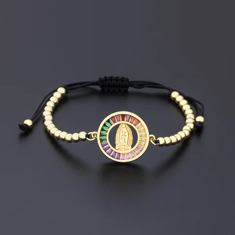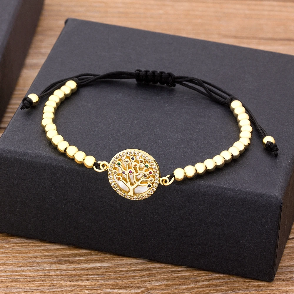 • Handmade Tree of Life Beads Bracelet Copper Zircon Paved Adjustable Rope Virgin Mary Bracelet Lucky Jewelry Braided Gift
