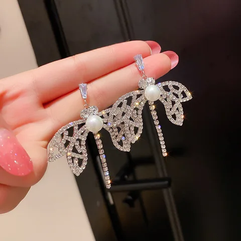 • Fashion Butterfly Earrings For Women Luxury Zircon Pearl Geometric Tassel Earring Girl Party Wedding Statement Jewelry Gifts