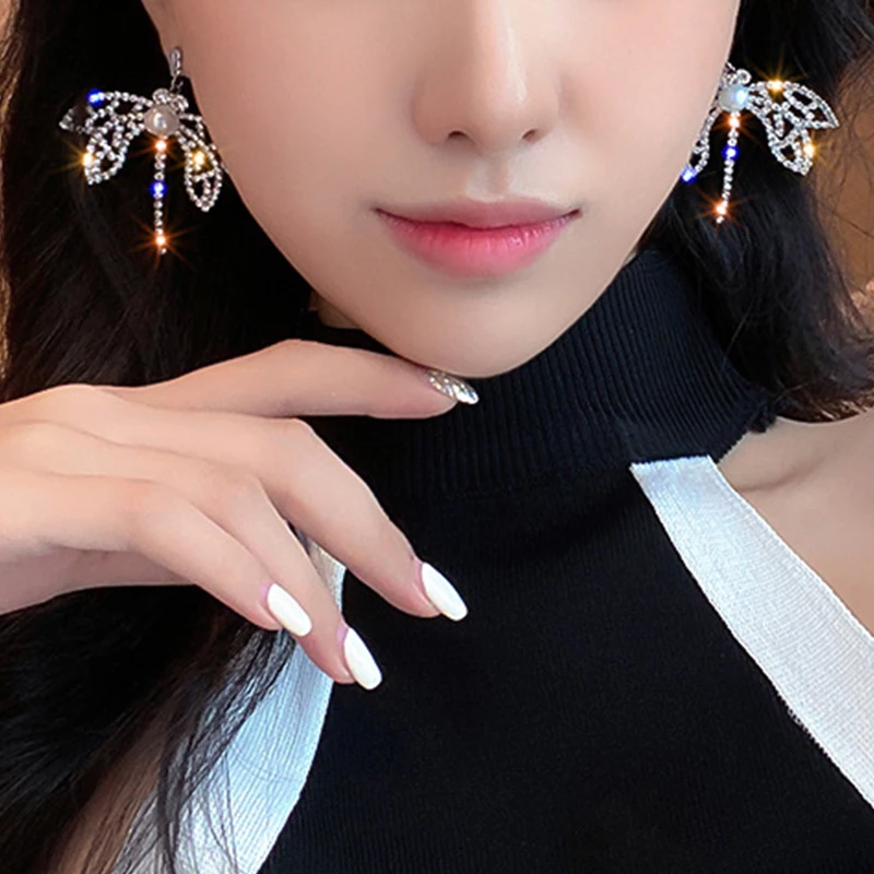 Fashion Butterfly Earrings For Women Luxury Zircon Pearl Geometric Tassel Earring Girl Party Wedding Statement Jewelry Gifts