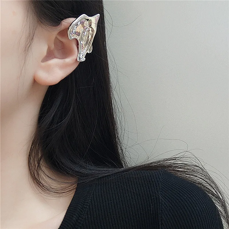 • Punk Fairy Clip Earrings For Women Goth Irregular Metal Ear Cuffs Unusual Statement Design No Piercing Korean Earrings