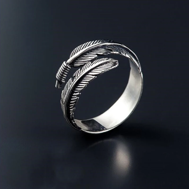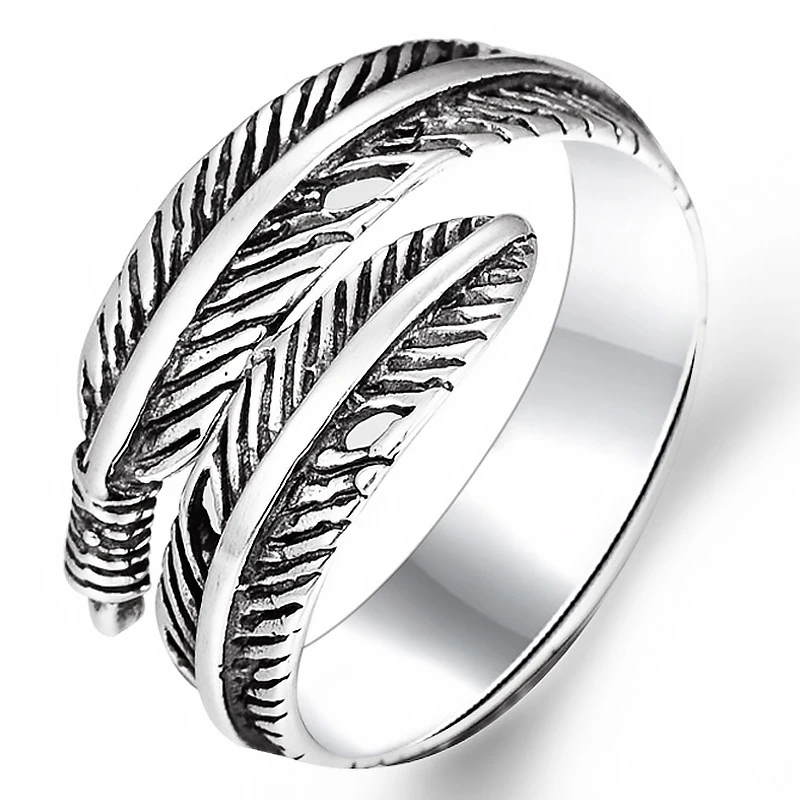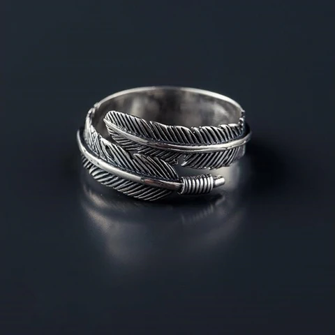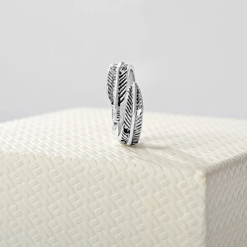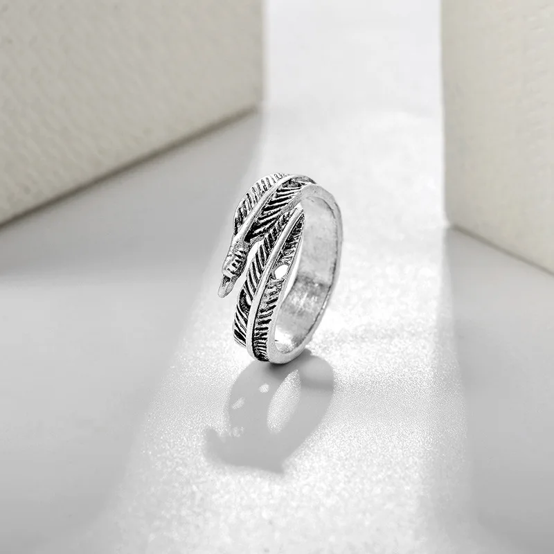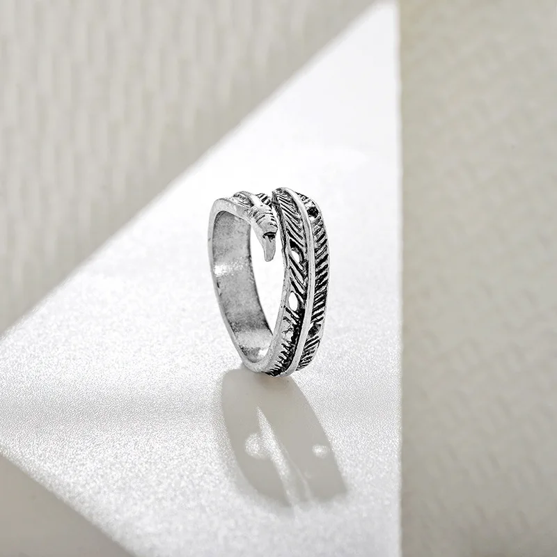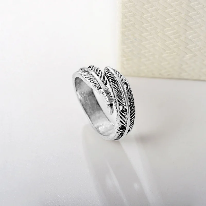 Minimalist Retro Silver Color Adjustable Opening Ring Creative Feather Butterfly Tree Branch Finger Rings For Women Charm Jewelry Bijoux