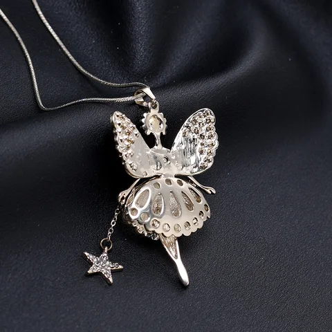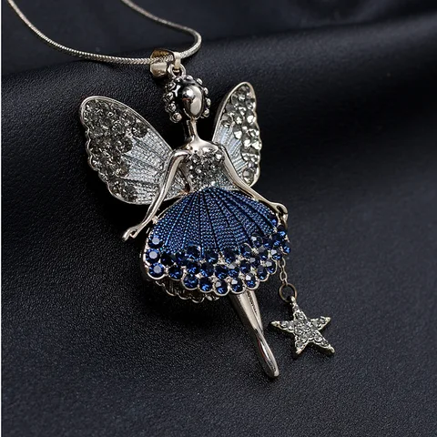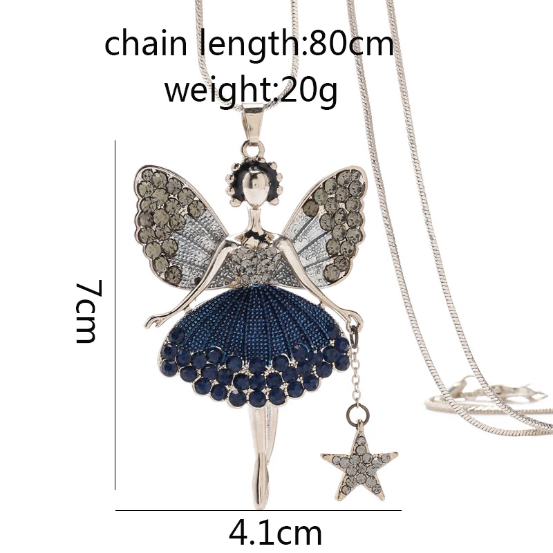 Vintage Fashion Statement Angel Fairy Pendant Necklace Women Crystal Dancing Girl Long Chain Necklace Winter Jewelry Accessories