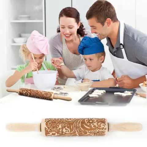 - START HAVING FUN IN THE KITCHEN WITH ALL YOUR FAMILY. Our textured rolling pin 14/16 Inch is very easy to use, so have some fun using this engraved rolling pin with your whole family. This embossed rolling pin can be used for fancy pastry decorations, cake decorations, shortbreads, basic biscuits, play dough, and even clay. Why not get your kids involved too!