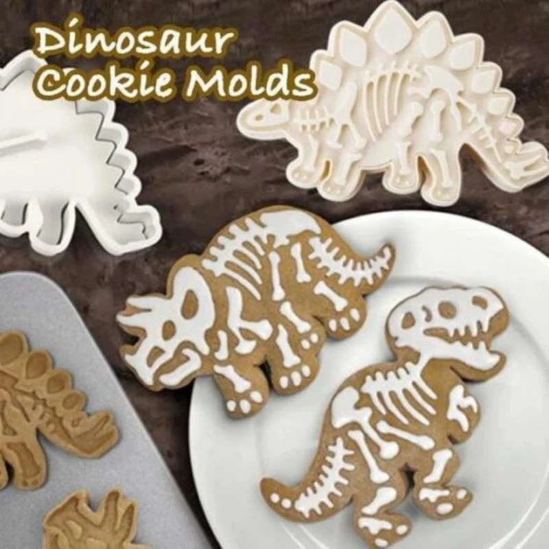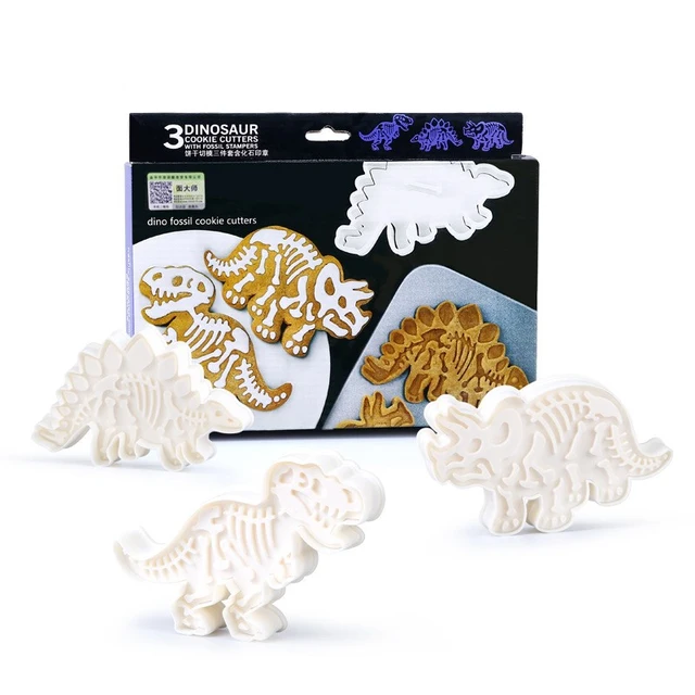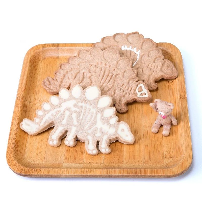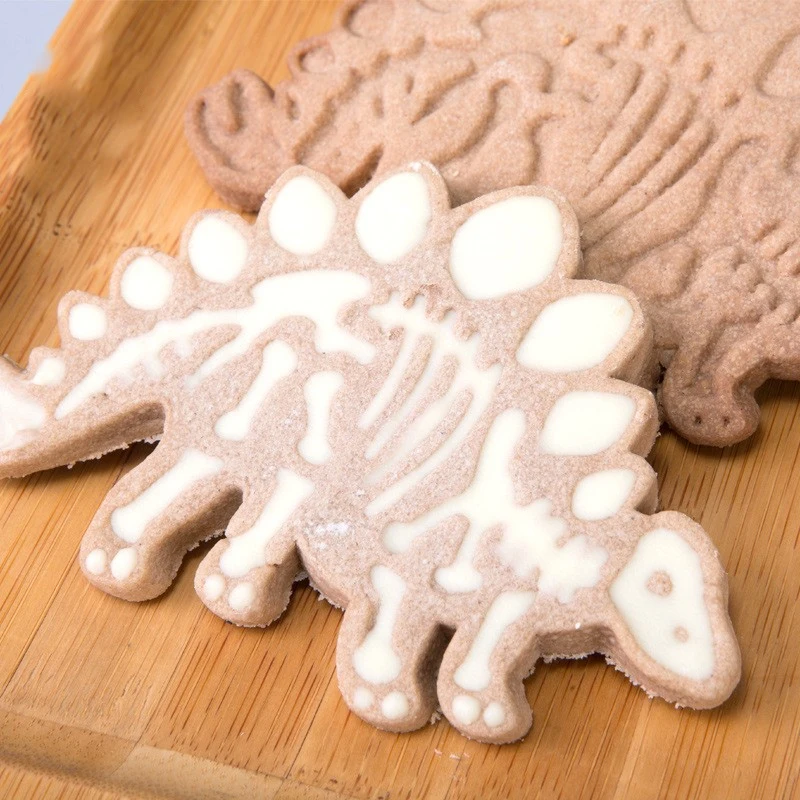 Easy to operate: Put the dinosaur biscuit model on the crust, press out the shape of the biscuit, and use the dinosaur skeleton to mold the bone pattern.